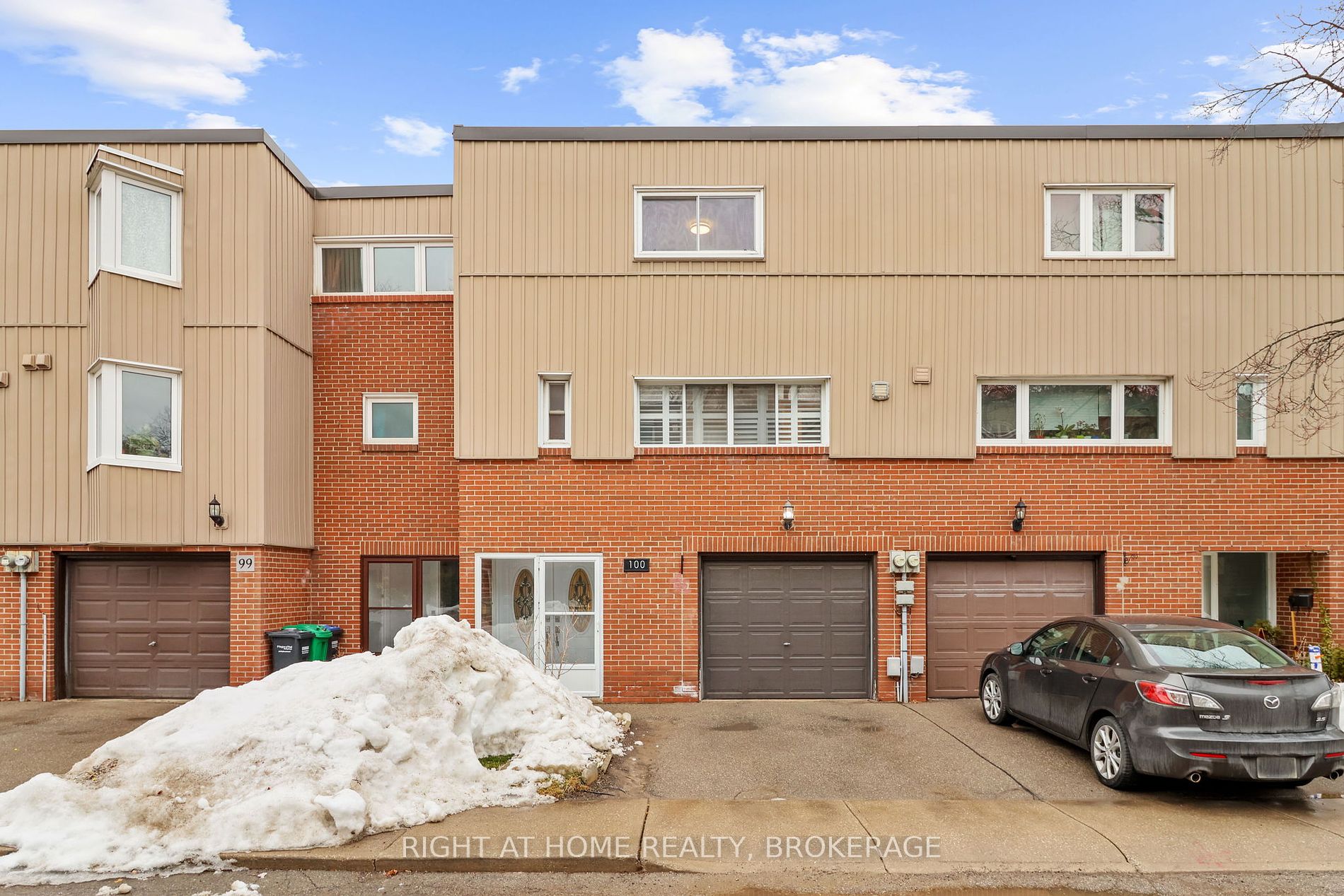 Nicely updated 3 bed + 2 bath townhome located in the family friendly community of Mississauga Valley. Spacious open concept floor plan with kitchen and dining overlooking the living room. Beautiful cathedral ceilings and a walkout to a private fully fenced backyard, perfect for entertaining guests. Recreation room can be used as an office space or a 4th bedroom. Well maintained complex with a playground and outdoor pool-lifeguard on duty all summer long. Roger's commercial bulk package for internet & TV included in monthly maintenance fee. Prime location close to schools, transit, Square One, Hwys QEW/403/407/401 and all the amenties you'll need. Some updates include: Newer furnace, A/C, hot water tank, water softener-all owned, no monthly equipment rentals. Electrical panel, plugs, light switches, touchscreen stainless smart fridge, toilets, garage door opener/remotes, backyard patio regraded, gas bbq, new oak stair railings throughout, freshly painted, kitchen cabinets & counters. Move in ready!