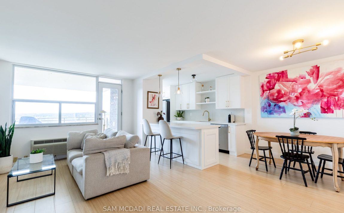 Discover an exceptional opportunity in South Mississauga! This beautifully renovated 3 full bedroom, 2 full washroom corner unit in the highly desirable Clarkson Village offers it all! Bright, spacious, and featuring breathtaking views of Lake Ontario, the unit showcases a desirable open-concept floor plan with laminate flooring throughout. The bespoke kitchen, complete with stainless steel appliances, quartz countertops, and a modern backsplash, effortlessly connects to the living and dining areas, ideal for both entertaining and daily living. The spacious primary bedroom is big enough for a king sized bed and includes a modern 3-piece ensuite and a walk-in closet, while every bedroom provides views of Lake Ontario. The unit also includes the convenience of an ensuite locker and a washer and dryer. The expansive balcony (10x11ft) offers endless possibilities, whether you're sipping your morning coffee, taking in the evening sunset, or dining al fresco (BBQs permitted!). Located within a short walk to the GO train, parks, trails, shopping, and schools, this well-maintained and updated condo building is situated in a highly desirable neighborhood. Includes 1 parking space and an ensuite locker, with extra surface parking available.