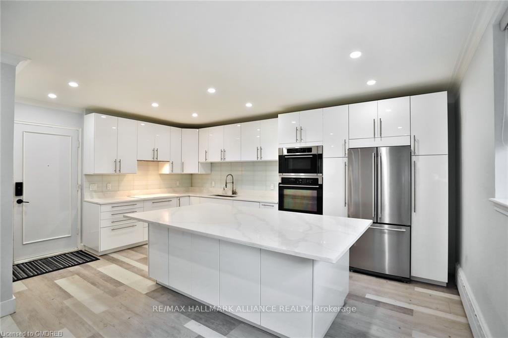 Step into this beautifully designed and impeccably maintained 2-bedroom, 1-bathroom ground-floor condo in the heart of downtown Burlington. Boasting 996 sq. ft. of thoughtfully designed living space, this home offers both style and functionality. Flooded with natural light from oversized South/East-facing windows, every room feels bright and inviting. The chefs kitchen is a true showpiece, featuring sleek quartz countertops, a stylish backsplash, under-cabinet lighting, and high-end built-in appliances, perfect for cooking and entertaining. Throughout the home, luxury vinyl flooring adds warmth and durability, while the modern, spa-inspired bathroom offers a soaker tub and a separate glass-enclosed shower, your personal retreat after a long day. Both bedrooms are spacious and well-appointed, providing plenty of room for relaxation. Convenience is key with well-kept laundry facilities and a secure bike storage room just steps from your front door. Walk to everything Burlington has to offer, including trendy shops, top-rated restaurants, scenic parks, the waterfront, the GO Station, the Performing Arts Centre, and excellent schools. With nothing to do but move in, this stunning condo is an incredible opportunity for those seeking urban convenience, modern finishes, and unbeatable value. Dont miss outcome see it today!
