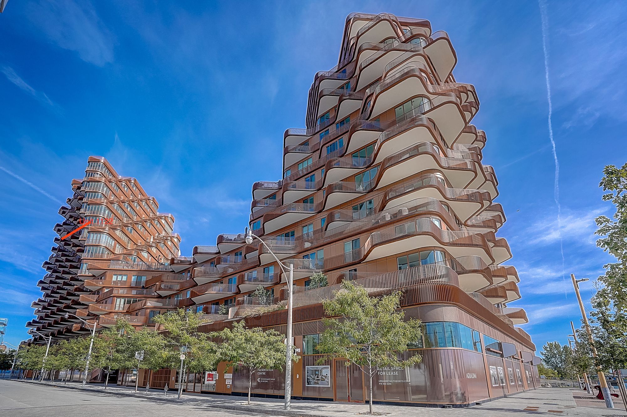 Welcome to luxury waterfront living at Tridel's Aqualuna, located in Toronto's vibrant East Bayside district. This exceptional brand-new 2-bedroom + enclosed den residence offers 2,433 sq. ft. of upgraded living space, featuring premium finishes and breathtaking south-facing views of the lake, gardens, and pool.Designed for both comfort and elevated entertaining, the suite showcases floor-to-ceiling windows, a spacious open layout, and a gourmet kitchen equipped with integrated appliances, an upgraded Miele induction cooktop with touch controls, natural stone countertops, custom cabinetry, a built-in wine cellar, and an enlarged double-waterfall island. Both bedrooms include private ensuites with heated floors and upgraded natural stone countertops, while the double-door enclosed den provides an ideal office or guest room. The luxurious primary retreat features his-and-hers walk-in closets, a spa-inspired ensuite, and direct access to a serene lake-view terrace, complemented by a second private balcony off the 2nd bedroom. Additional conveniences include a full-size laundry room with sink and ample cabinetry, along with an EV-ready parking space.Resort-style amenities include a lakeside outdoor pool, fitness and yoga studios, sauna, media and party lounges, and 24/7 concierge service. Just steps from Sugar Beach, the Martin Goodman Trail, the waterfront promenade, and some of the city's best dining and cultural destinations, this home offers an unmatched blend of tranquility, sophistication, and urban convenience.