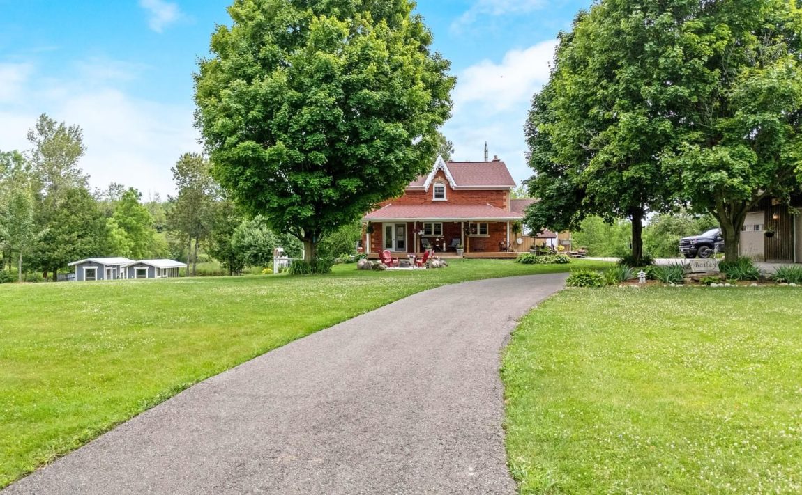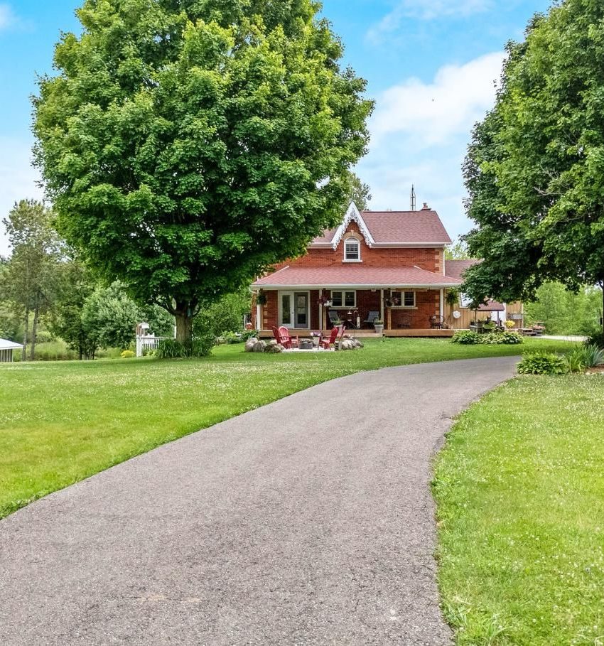Enjoy a life less ordinary at this storybook Victorian replica home, set on over 5 picturesque acres in the heart of Campbellville. With its charming brick and board-and-batten exterior, this inviting country property offers a beautiful setting for family living, homesteading, hobby farming, or a home-based business, all surrounded by nature and open space. Outbuildings add exceptional versatility, including a 23 x 40 ft detached garage with oversized doors and an unfinished loft, as well as a 40 x 17 ft workshop featuring a roll-up door for easy equipment access and a French door walkout, offering flexible space for projects, storage, or creative pursuits. The property showcases a blend of open field and mature woods, with two chicken coops, raised garden beds planted with perennial asparagus and berries, and a second driveway leading to a large open area ideal for future use or expansion. At the centre of it all, a spring-fed pond connected to Bronte Creek creates a peaceful backdrop for everyday living, complete with a floating dock and a powered tree fort, offering a unique outdoor retreat. Inside, the open-concept kitchen, dining, and living space is filled with natural light and farmhouse-inspired charm, creating a warm and welcoming atmosphere. French doors at both the front and back lead to a covered front porch and a screened-in back porch with sun deck, extending the living space outdoors and offering multiple areas to relax and unwind. The upper level offers four bedrooms, including a primary with a 4-piece semi-ensuite. The finished walkout basement adds a fifth bedroom, 3-piece bathroom, wet bar, and wood-burning fireplace, providing additional living space for guests, extended family, or everyday flexibility. An above-ground pool and the surrounding natural landscape complete this private retreat, all just minutes to highways, schools, and local amenities, offering the perfect balance of country living and convenience.