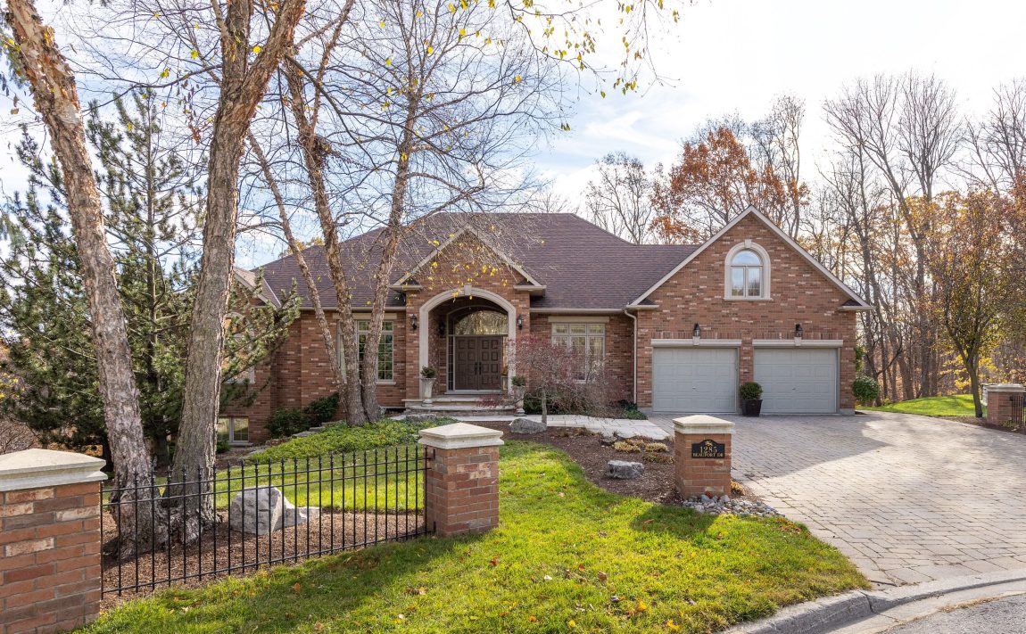 Discover this exceptional custom executive bungalow with southern exposure positioned at the end of a peaceful cul-de-sac on a 1/3 acre lot,where luxury meets tranquility backing onto a wooded ravine connecting the Bruce Trail and all its beauty.This stunning 3+1 bdrm,3.5 bath residence spans 6,327 sq ft of meticulously designed living space,perfectly situated in Burlington's desirable Escarpment neighbourhood.Natural light cascades throughout the home,enhanced by impressive 10-12ft ceilings on the main level and over 9 -12ft ceilings on the lower level.Open concept Great Room features hardwood flooring and a cozy gas f/p flowing seamlessly into the gourmet kitchen.The kitchen showcases pristine cabinetry,a large island and breakfast area w/ convenient access to the outdoor 16ft x 22ft balcony overlooking your backyard.The perfect places for casual entertaining. Elegant formal dining room accommodates larger gatherings, while a separate main-floor office provides a quiet workspace.The oversized primary bdrm offers a private retreat with gas f/p,spacious w/i closet,and updated 5 pc ensuite. 2 addt'l bedrooms, 4 pc bath, and powder room complete the main level along with the practical elements of a laundry room with direct garage access.The finished LL expands living options w/ a rec room complete with pool table area,media room,and a gym area with direct access to the yard. Guest bedroom is located next to a 4-pc bath.The Utility room w/ 12ft ceiling provides ample storage,maximize functionality.Step outside to discover a private retreat w/ manicured gardens featuring an inground saltwater pool & extensive entertaining areas accessible through 2 separate walkouts from the LL.A double oversize garage provides space for a car storage lift system. This prime location offers convenient access to highways,shopping,walking trails,& golf, creating the perfect blend of suburban serenity and urban convenience. Freshly paint thru/out ensures move-in readiness. LUXURY CERTIFIED