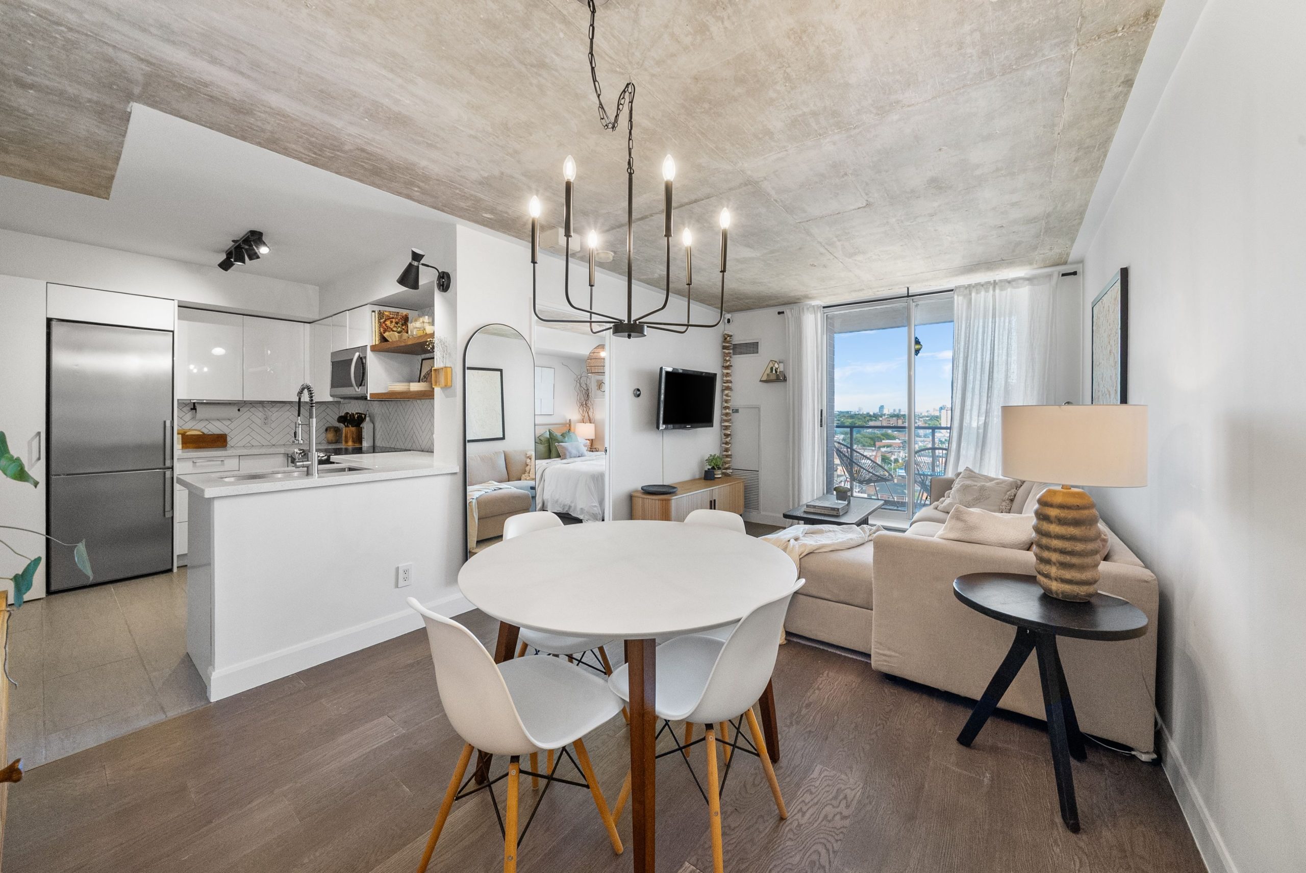 Welcome to 1369 Bloor St W - Located in the Heart of Bloor West Village!Featuring an updated 1-bedroom condo with East-facing balcony, large windows, and a highly functional layout with a generous sized kitchen and separate dining area - ideal for both daily living and entertaining. The chef-inspired kitchen includes quartz countertops, stainless steel appliances, herringbone backsplash, under-cabinet lighting, floating walnut shelves, and modern fixtures. Enjoy engineered hardwood floors and smooth concrete ceilings throughout for a sleek, contemporary feel. Set in a building with excellent amenities, including an outdoor pool - perfect for cooling off in the summer months or entertaining! Plus a gym, party room, and security system. Located just steps from the Sterling Road arts and innovation district - home to the Museum of Contemporary Art (MOCA), the Drake Commissary, Henderson Brewery, and a growing mix of creative studios, tech offices, and cafes. The surrounding Junction Triangle is one of Toronto's fastest-evolving neighbourhoods, combining industrial charm with vibrant community energy. Nature lovers and active commuters will appreciate being close to the West Toronto Rail path, a multi-use trail perfect for walking, jogging, and cycling, offering a peaceful, car-free connection through the city surrounded by trees, murals, and green space.Additionally,Transit couldn't be easier with the Bloor subway line and UP Express just minutes away - downtown in 10 minutes, Pearson Airport in 20. A perfect opportunity to live in style, with space, convenience, and culture right at your doorstep.