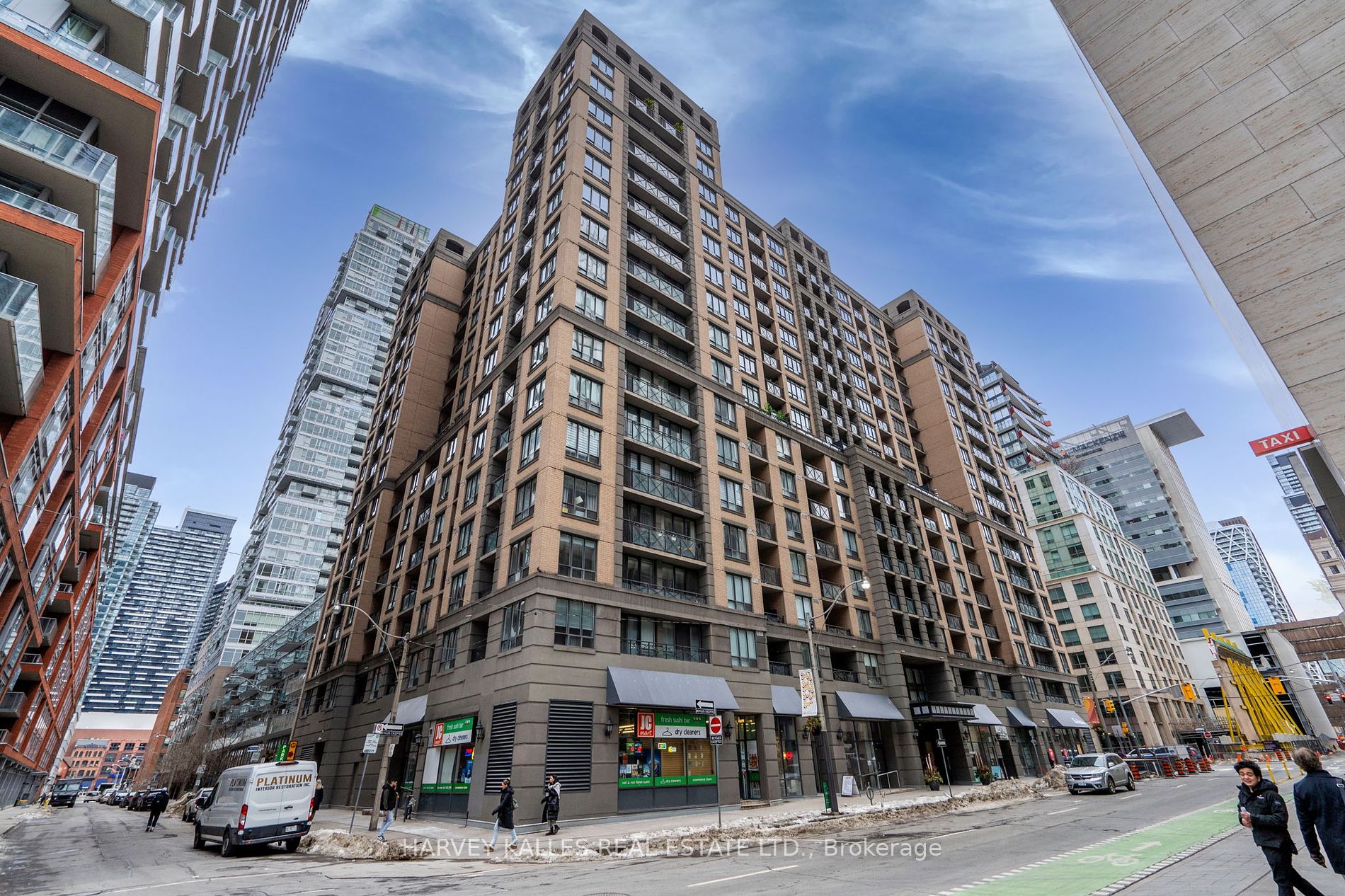 Welcome to University Plaza close to University and Richmond built by Plaze Corp. This spacious 1-bedroom, 1-bathroom condo features new kitchen cabinets and engineered hardwood floors, an open-concept layout, and a modern kitchen with granite countertop and a subway tile backsplash. The private balcony provides a perfect spot to unwind and enjoy city views. The spacious primary bedroom boasts a large custom built closet, while the sleek 4-piece bathroom offers contemporary finishes. The unit includes a storage locker. This condo may permit short term rentals that will appeal to investors. Residents enjoy top-tier amenities, including a 24-hour concierge, a fully-equipped fitness center, jogging track, media and billiards room, a spacious rooftop terrace with BBQs, and a stylish party room. Located just steps from the Financial District, Entertainment District, and PATH, this condo offers unbeatable access to TTC transit, Union Station, top restaurants, shopping, and major downtown attractions. Move-in ready and perfect for urban professionals or investors - don't miss this incredible opportunity!
