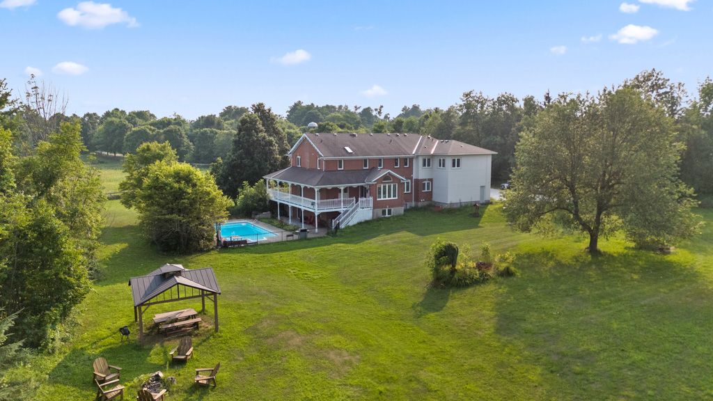Welcome to 14141 Dublin Line, Where Luxury Meets Lifestyle of 6119 sq ft of total living space on 9.46 Acres of Pure Country Perfection. If you're searching for tranquility, privacy, natural beauty, and luxury wrapped into one incredible estate this is the one! Set on over 9.4 pristine acres of manicured countryside, this show stopping estate offers glorious panoramic views, rolling hills, and a sense of peace thats nearly impossible to find all just 5 minutes to the GO Train, 15 to the 401/407, and a short drive into town. It's your private retreat, perfectly connected. Fully gutted in 2023 and renovated top to bottom by 2024 with no expense spared. This home is a masterclass in design and comfort. From rich hardwood floors to porcelain tile, granite countertops, and luxury finishes throughout everything feels intentional, elevated, and built to impress. From the moment you enter, youre greeted with jaw-dropping views of the rolling landscape and an open layout thats made for hosting. The main level features a crisp white chefs kitchen, oversized living, dining, and family rooms, and a floor plan that balances elegance with everyday functionality. Upstairs? Youll find 5 spacious bedrooms, including TWO primary suites one with three walk-in closets and a spa-like 5-piece ensuite, the other overlooking the pool and hot tub with its own luxe bath. Four out of the five bedrooms have their own ensuites perfect for large families or guests. The walkout basement is bright, open, and built for entertaining. Think: movie nights, game days, slumber parties this space does it all and more. Outside, the amenities continue:Set back from a tree-lined road for maximum privacy, Fully fenced yard with plenty of space to roam, 18x36 in-ground pool + hot tub, Horse paddock, Detached shed, And views that belong on a postcard. This isn't just a home its a lifestyle upgrade!!. Whether you're raising a family, hosting unforgettable events, or just craving space and serenity.