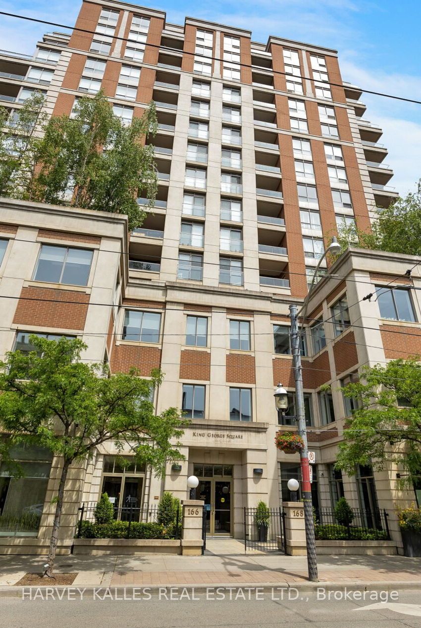 Wake up to stunning unobstructed south views of the waters and St Lawrence Market from your redesigned sub penthouse suite at prestigious King George Square, nestled in one of Toronto's most desired neighbourhoods. Carefully upgraded with true pride of ownership, taste and details. Efficient floor plan offers flexibility of room usage with generous room sizes and storage. Walnut finished engineered flooring throughout. Sizeable Den for study/office or sitting lounge. White gloss floor-to-ceiling custom closets and cabinetry presents ample storage capacity. Modern chefs inspired Kitchen w/ European custom cabinetry, appliances, marble backsplash & Caesarstone waterfall/ counters. Extensive sun lit living and dinning rooms look out to beautiful views. Spacious Master Bedroom offers a walk-in closet, 4-piece ensuite and walkout to a private balcony. Sizeable Guest Bedroom presents abundant space for queen size bed, currently used for professional meetings/office purposes. Top quality European full span bedroom partition glass walls and suspended sliding doors, new under 10yr warranty, added comfort of privacy by motorized roller shades.3 blocks from Financial District, King Street East Design district, George Brown, the waterfront and Distillery District. Long standing reputation of mature executive catered ownership, condo management and healthy reserve funds.1,110 sq. ft of interior space, 2+1 Bed, 2 Bath, Prkg and Lckr. 24 h concierge, exercise, sauna, deck and garden, and party meeting room. Your forever home awaits in this awarded National Geographic's Top 10 Food Market in the World...