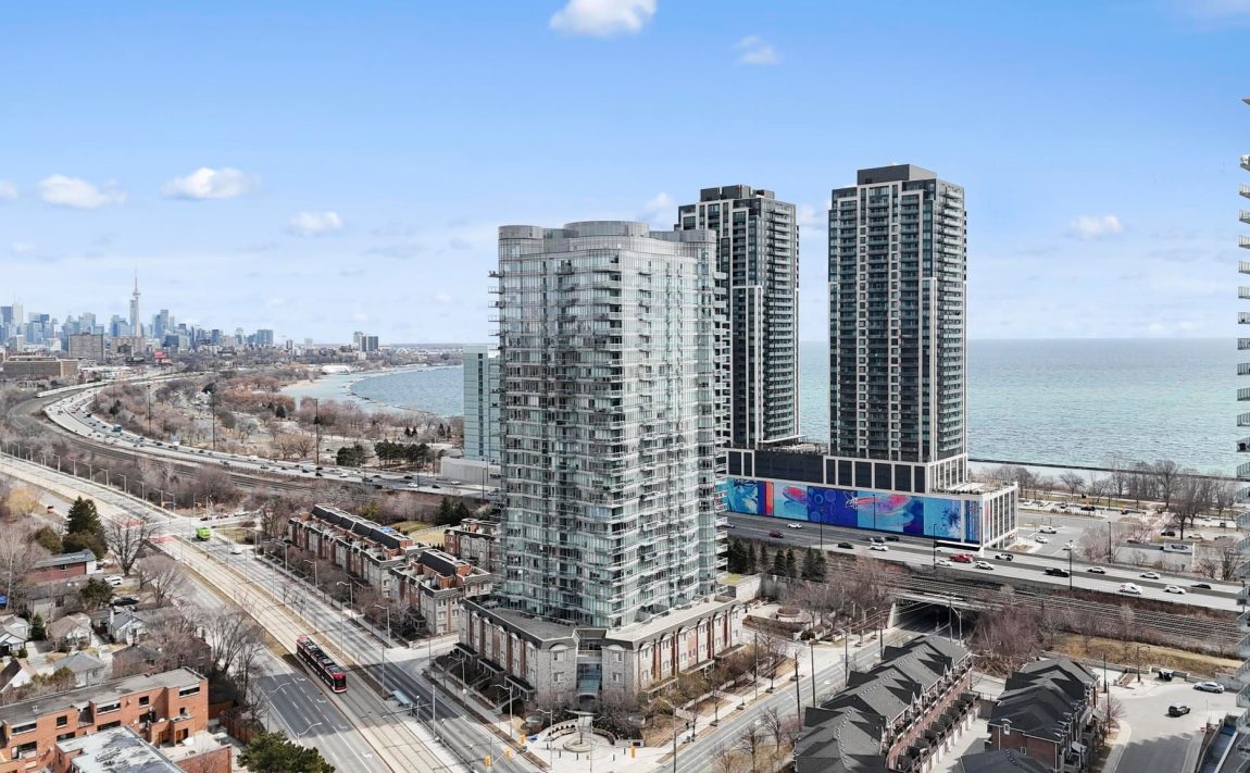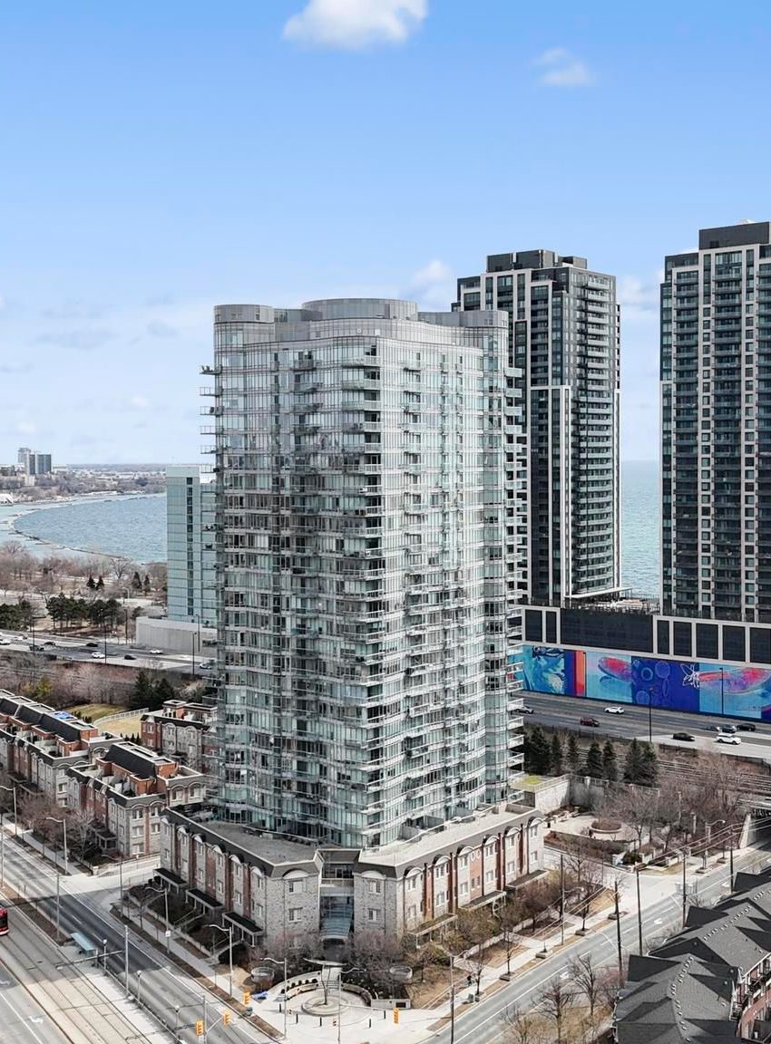 Welcome to "Windermere By The Lake." Rarely offered, the sought-after '10' model suite showcases breathtaking panoramic views of Lake Ontario through approximately 60 feet of floor-to-ceiling windows. This bright and spacious residence, plus balcony, features 9-ft ceilings and an open-concept living and dining area with a flexible layout. The den offers versatility as a home office or nursery. The oversized kitchen is designed for both everyday living and entertaining, complete with a centre island, breakfast bar, subway tile backsplash, and ample storage. Additional highlights include hardwood flooring, custom window coverings, and generous storage throughout. Step out onto the private balcony and enjoy stunning lake views and sunsets. Maintenance fees conveniently include water and electricity, offering added value and peace of mind. This turnkey unit is ideally situated in a vibrant lakeside community with exceptional amenities nearby-where urban convenience meets tranquil waterfront living. Located just minutes from High Park, Sunnyside Beach and Boardwalk, Bloor West Village, and Roncesvalles, with easy access to Bloor St W, Gardiner Expressway, The Queensway, and Lake Shore Blvd W. TTC and streetcar access at your doorstep make commuting and city exploration effortless.