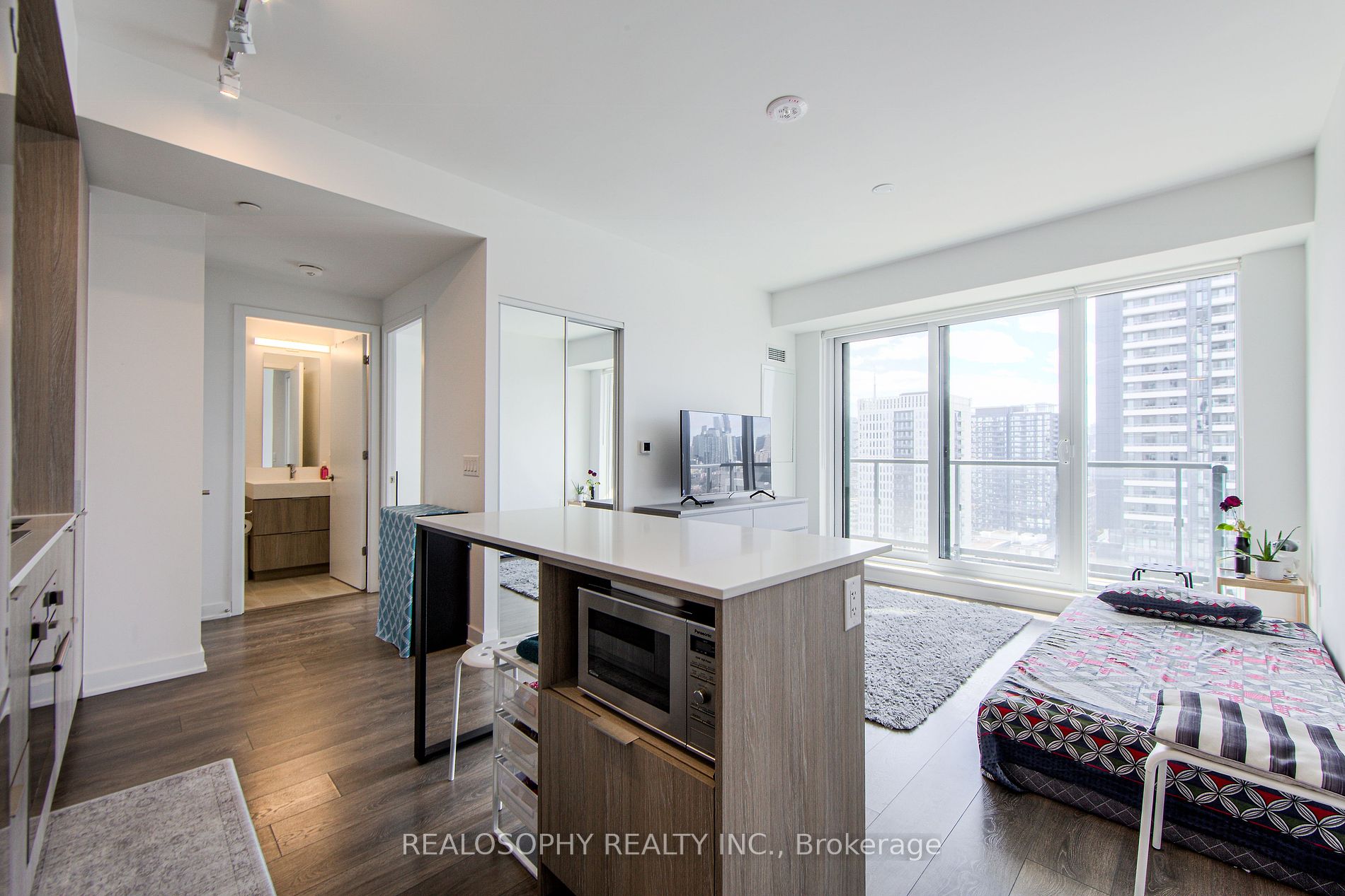 Immaculate Condition 1 Bedroom, 1 Bathroom, Bright Condo For Sale at Artwork Condos. This Wide Open Concept Floor-Plan With Modern Finishes Was Built In 2023 And Shows Very Well. The West Facing Extra Large Balcony Has Afternoon Open Sun Light Views, Allows You To Enjoy Those Endless Summer Days Or Lazy Evenings Gazing Onto The Southern Cityscape. The Modern Kitchen Comes With A Seating Island And Overlooks The Living Area With Easy Walk Out To Balcony, Great Space For Entertaining Guests. The Very Polite Tenants Are Willing To Vacate With Property With Notice(60+Days) Or Happy To Stay If The Buyer Is Looking To Keep Great Tenants On Current Terms. The Building Is Conveniently Located Near Transit, 10 Minutes To Downtown, Parks, Community Centres, Riverdale Farm, All Walking Distance Including Grocery And Services on Dundas Or Queen. Take a Walk Over The Bridge To Riverside or Leslieville And Enjoy Brunch Or Lunch At A Endless Array Of Restaurants and Cafes Or Stay in the Neighbourhood and enjoy, Parks, Community Center, Cafes and More. Amazing Amenities Include Spacious Gym With Endless Equipment and 99 Person Capacity, Plus Outdoor Work-Out Area , Shared Workspace With Private Offices, Games Room, Kids Play Room, Garden Rooftop With BBQ Area, Kids Playscape, Lounge Area, Security and Visitors Parking not to Mention Legendary Pro League Sports Collectibles Shop, Bevy Coffee Shop, Sushi96 Opening Soon and All at Your Doorstep. Some Living Room and Bedroom Pictures are Virtually Staged.