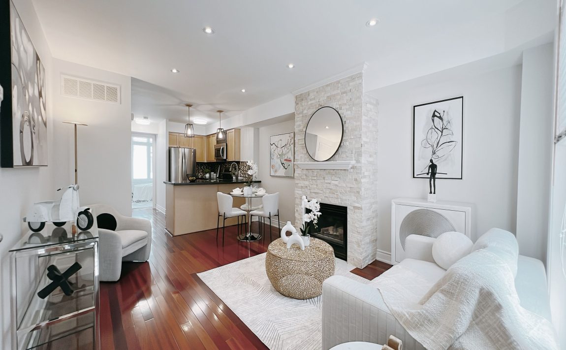 A Rare and Charming Sunny 2 Bedroom Plus Family Room Townhouse In The Prestigious King West. Nestled On A Quiet Street Within A Picturesque, Tree Lined Courtyard. Desirable Layout Offers Approximately 1,085.5 Sqft Of Well Designed Interior Living Space, Along With A 170 sqft Patio Perfect For Outdoor Entertaining Or Relaxing. Built In Garage 340.9 sqft For 2 Cars And Tons Of Storage, Hardwood Floors And Flat Ceilings Thru Out And Stone Facade On Fire Place. Kitchen Boasts Granite Counters, Marble Tile Backlash And Stainless Steel Appliances. Living Room Has Extra Pot Lights. Master Bedroom With Ensuite And Large Walk-In Closet. Large Family Area. New Plumbing Throughout The Entire House (2025), New Garage Door (2024), New Roof (2020). Steps To 24hr Ttc, Parks, Vibrant Shops, Renowned Restaurants, Art Galleries, Grocery Stores And More.