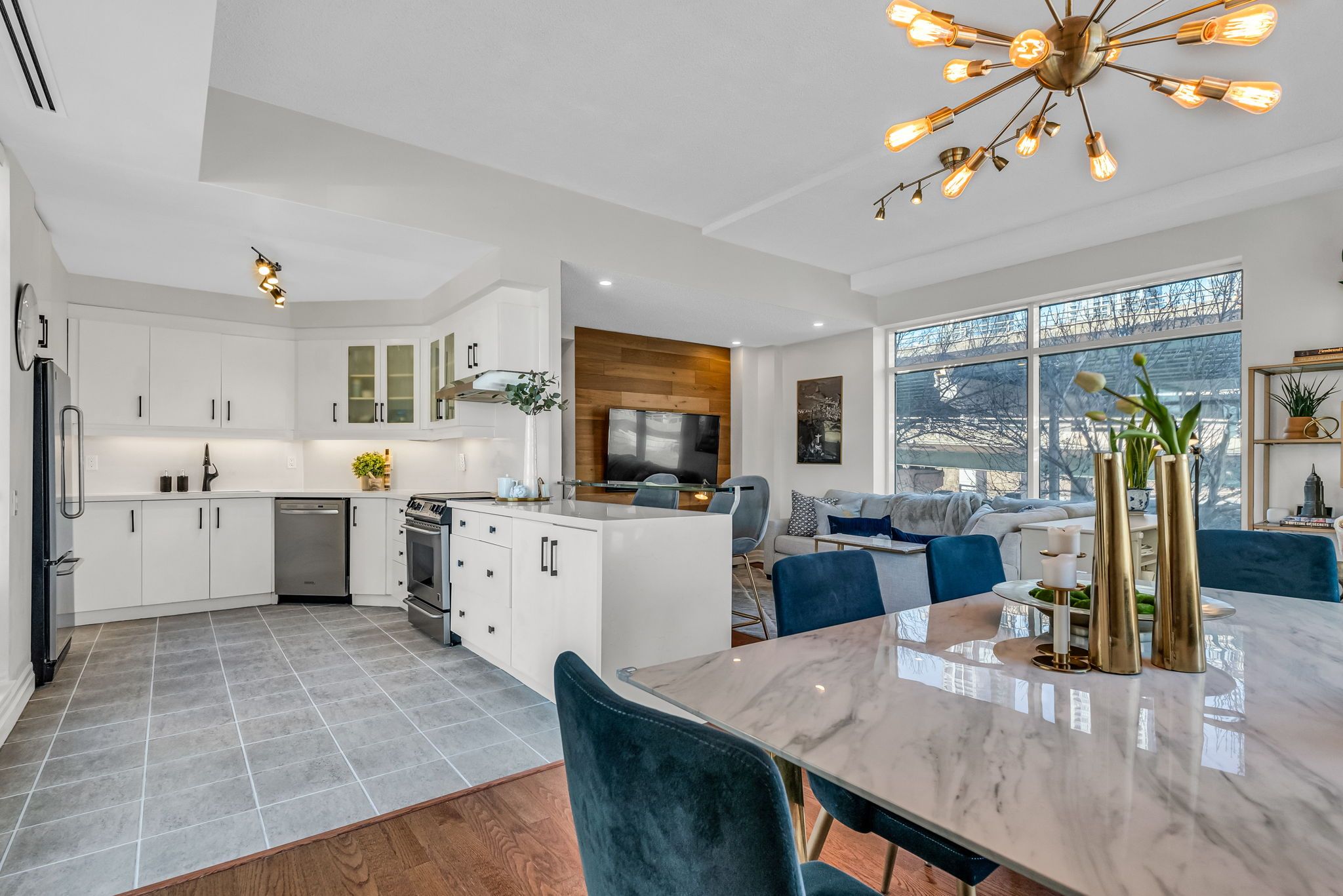 Welcome to this beautifully updated 2-bedroom + den suite in Torontos vibrant Harbourfront community, offering 1,350 sq. ft. of intelligently designed space, where the pulse of the city meets the serenity of the lake. Rarely does a residence like this come to market where the space and feel of a small home meet the ease and amenities of condo living in one of the most sought-after downtown locations. Ideal for professionals, downsizers, or small families seeking comfort without compromising location or lifestyle. Floor-to-ceiling windows flood the semi open-concept living and dining areas with natural light and offer charming views of the lake and CN Tower peeking through the cityscape - a quiet reminder that you're just steps from the waterfront. The renovated kitchen is a standout feature, with sleek stone countertops, stainless steel appliances, and thoughtful modern finishes that blend style and functionality. Both bedrooms are generously sized, featuring large closets, oversized windows, electronic blinds, and blackout shades - perfect for restful nights and peaceful mornings. The primary suite includes a newly renovated ensuite bath for added comfort and privacy. A spacious den with a closet offers flexible use as a third bedroom, home office, or creative studio, ideal for professionals, downsizers, or growing families. Step outside your door for lakeside strolls or head just minutes away to Scotiabank Arena, Rogers Centre, and Torontos top restaurants and cultural destinations. Enjoy the perfect balance of urban energy and lakeside calm, all in one exceptional location. Included with this home are one parking space, one storage locker, and full access to premium, resort-style amenities: 24-hour concierge and security, visitor parking, sauna, fitness centre, library, and more. Amenities are being updated. EV charging is also available in the garage. This is a non-smoking building. Don't miss your opportunity to experience waterfront living at its finest.