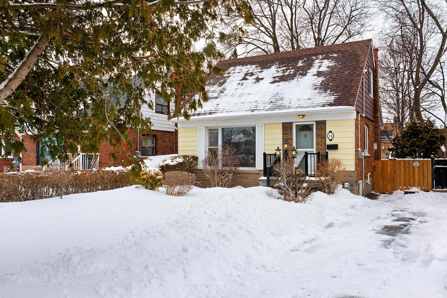 Welcome to 24 Century Dr. This charming 2-bedroom detached home sits on a spacious lot framed by mature trees, offering an exceptional opportunity for buyers looking to enter the detached market. Proudly offered for the first time in nearly 50 years, this well-loved home presents a rare chance to secure a solid property with incredible potential. The main level features a functional layout filled with natural light, along with a main floor den that offers excellent potential for a home office or flex space. The finished basement adds valuable additional living space with a generous recreation room-perfect for relaxing, entertaining, or family gatherings. Whether you're looking to move in and enjoy as is or gradually update and customize, this home provides a fantastic canvas to make it your own. Outside, the private lot offers ample space to garden, entertain, or simply unwind. Parking for up to three cars adds everyday convenience and flexibility for families and guests alike. Ideally located close to major transit hubs, shopping, schools, and everyday amenities, this property combines location, lifestyle, and long-term value. An outstanding opportunity to get into a detached home in a well-established neighbourhood. Furniture in photos has been virtually rendered.