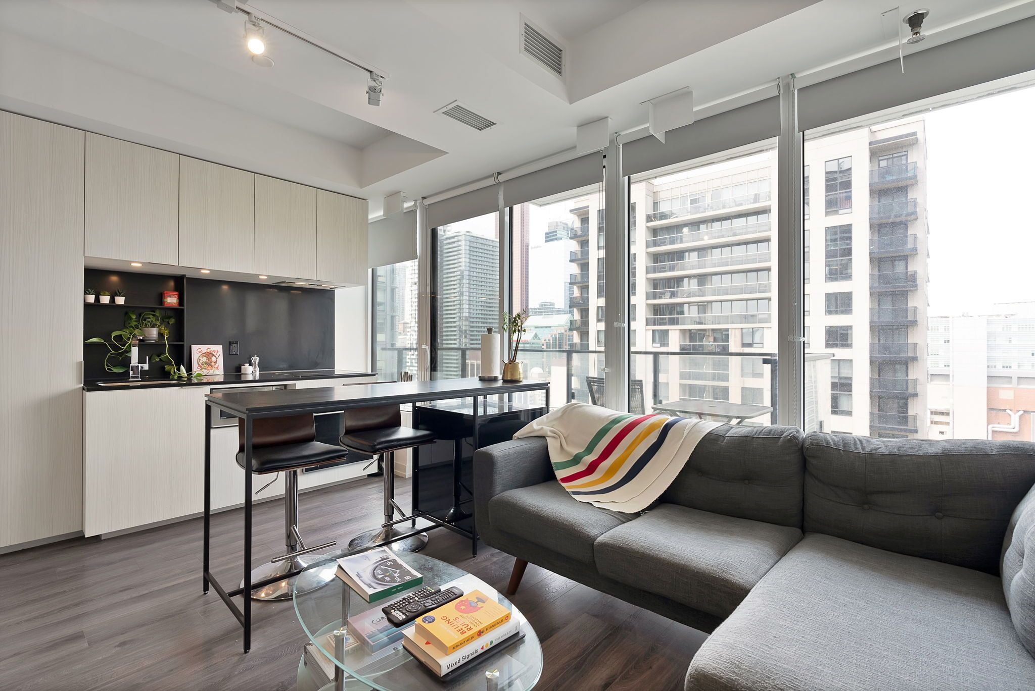 Seize the opportunity with this attractive bright 1BR located on the 25th floor. Great for starter home and investors alike. Low maint fees. Walking distance from Toronto Metropolitan University,Ryerson, and Eaton Centre. Functional layout with open living/dining. Sleek built-in appliances fora modern aesthetic, equipped with a kitchen island, ensuite laundry, and roller blinds. New grocery store located at the base of the building. Great amenities: common workspace area, gym, party room,and rooftop pool. Enjoy the west views over the city from your private balcony.