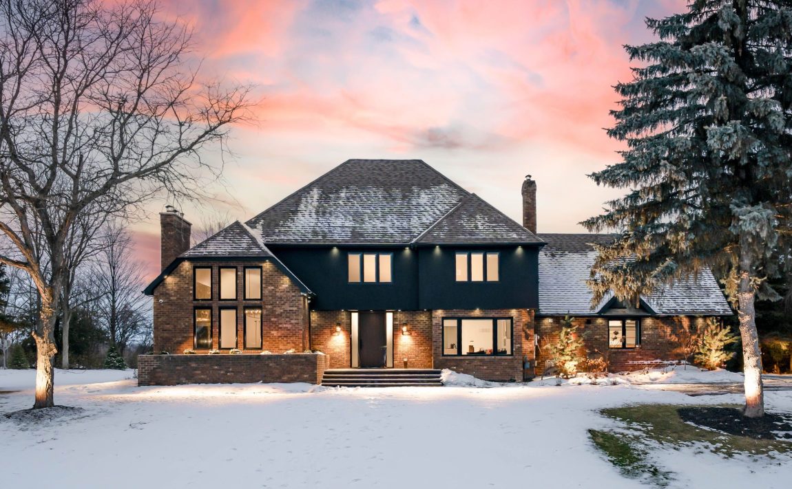Situated in a quiet executive enclave and set well back from the road on a private and breathtaking, 1.5 acre lot with no homes directly behind, this striking custom-built home offers classic design enhanced by exceptional modern updates. Extensively renovated over the past five years with designer flair and meticulous attention to detail, the home showcases gorgeous, engineered hardwood and ceramic flooring, abundant pot lighting and a consistent upscale aesthetic throughout. At the heart of the home is a chef-inspired kitchen featuring an oversized island with waterfall edge and seating, quartz countertops and premium appliances. Floor-to-ceiling cabinetry with glass accents and a walkout to the patio complete this stunning space. The inviting family room offers a toasty fireplace framed by custom built-in shelving, while the combined living and dining rooms impress with vaulted ceilings, expansive windows, and a striking fireplace set against an eye-catching feature wall. A sleek glass-railed staircase leads to the upper level where four generously sized bedrooms and a loft await. The upper foyer is both stylish and functional, featuring built-in organizers for added storage and a large window that fills the space with natural light. The primary retreat includes a walk-in closet with custom organizers, a decadent ensuite and access to a finished loft area above the garage - perfect as a sitting room, office or studio. A second primary suite enjoys ensuite access to another beautifully appointed bathroom and built-in closet organizers. Two additional bedrooms share a lavish main bath. The unfinished basement offers a wide-open canvas ready to be customized to suit your needs. Parking is plentiful with space for 10 vehicles in the driveway plus an attached 3 car garage. Ideally located close to schools, parks, trails, recreation centre, shopping and more with easy access to main roads for commuters. This is executive living at its finest!