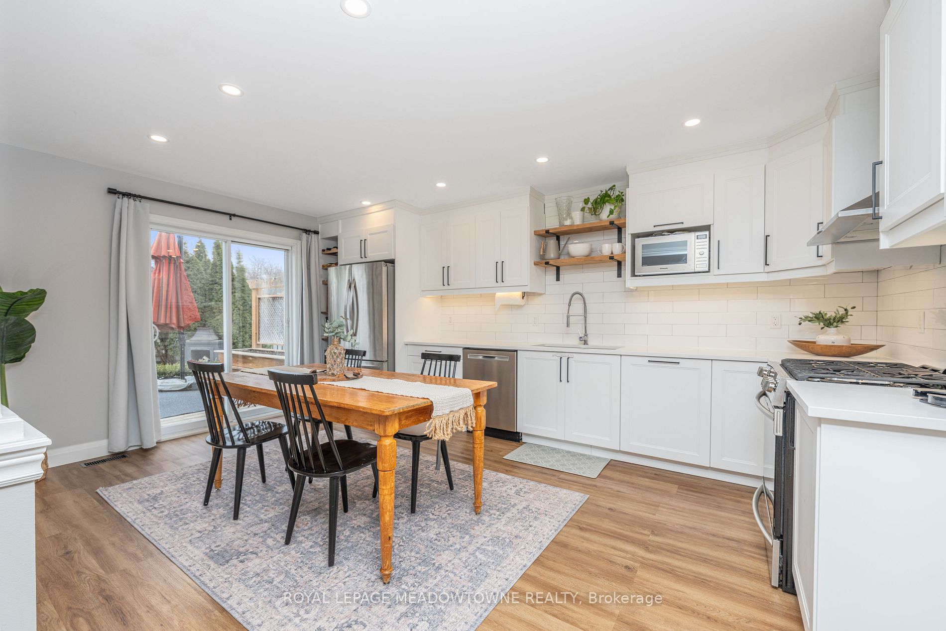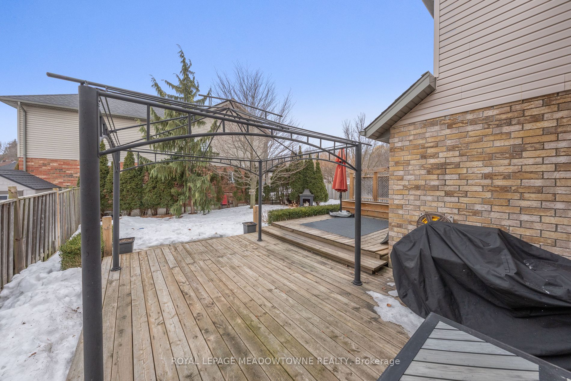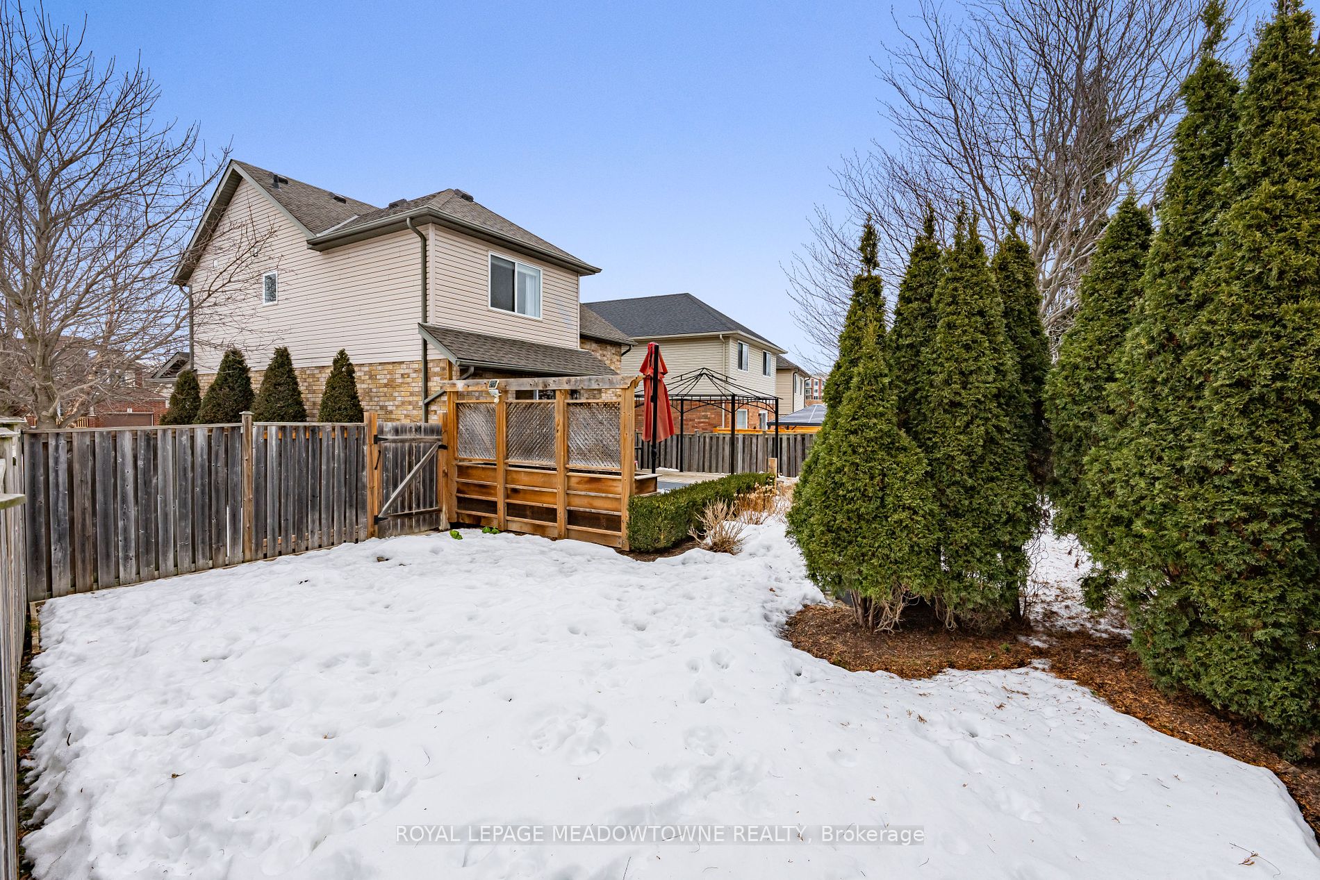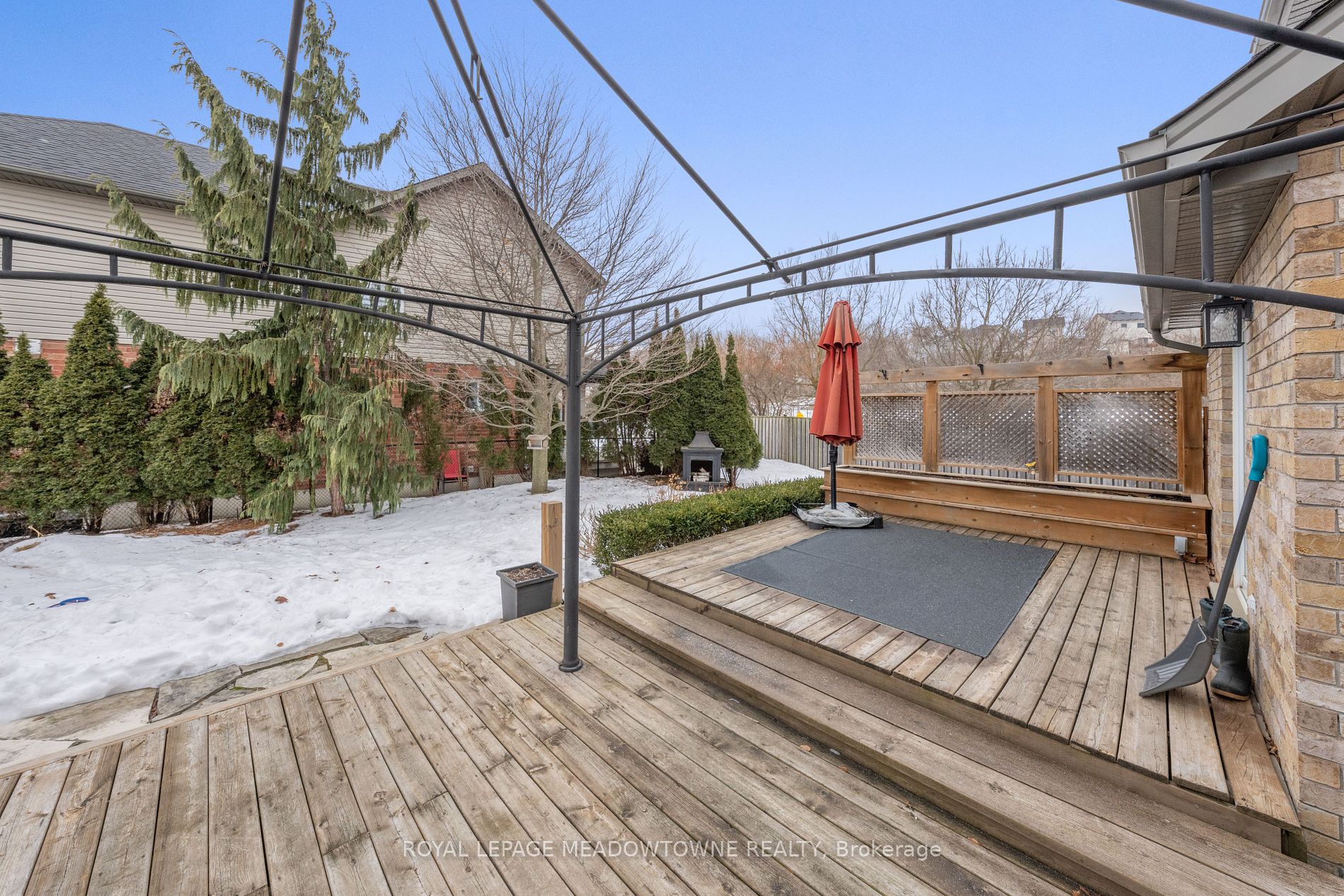 Welcome to your dream home! This beautifully updated 3-bedroom, 4-bathroom detached residence is move-in ready and perfectly designed for modern living. Nestled on a meticulously landscaped lot with a lush, private backyard, this home offers a bright and contemporary atmosphere with soaring ceilings that extend to the upper level. The main floor boasts smooth ceilings, recessed lighting, and an elegant, updated kitchen with a cozy eat-in area. Step through the patio doors to a stunning two-tiered deck -- an ideal space for summer BBQs or a safe haven for children to play. Upstairs, youll find three well-appointed bedrooms. Two at the back feature ample closet space, while the front-facing primary suite offers a full wall of built-in storage and a private 3-piece ensuite. The fully finished basement is a true extension of your living space, featuring a spacious recreation room with a fireplace, built-in shelving, a powder room, laundry area, office nook, and additional storage. Enjoy peaceful mornings or unwind in the evening on the inviting covered front porch, perfect for taking in the charm of the neighbourhood. Ideally located in a family-friendly community, this home is steps from Meadowglen Park and within walking distance to the GO station, Downtown Georgetown, the farmers market, and Glen Williams. With a two-car driveway and double garage, parking is never an issue. Dont miss this incredible opportunity -- schedule your showing today! Updates: Kitchen reno ('21), Main level smooth ceilings('21), Main level flooring ('21), Ensuite bath updated ('17), Shingles ('16)