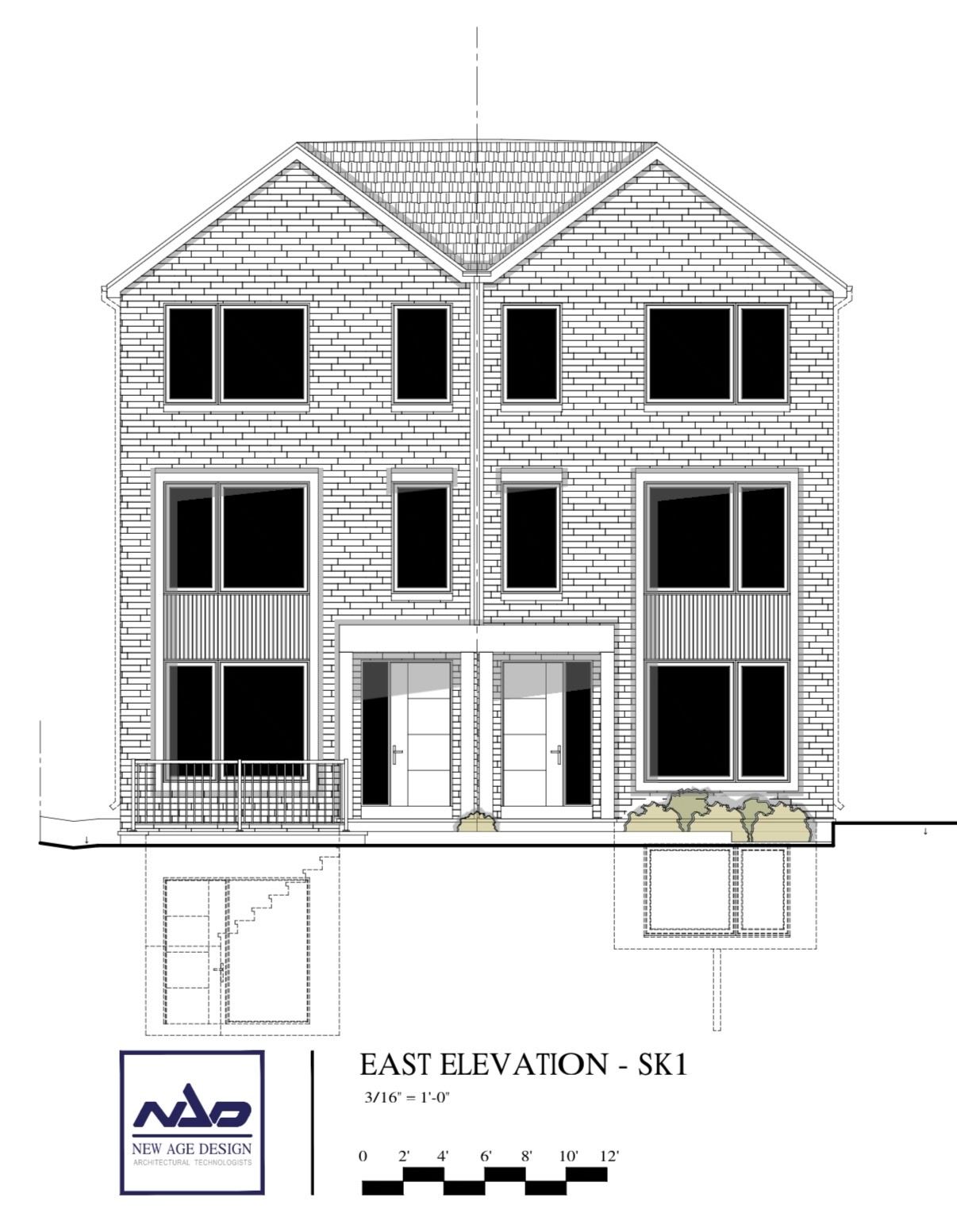 Front entry is on the East side of