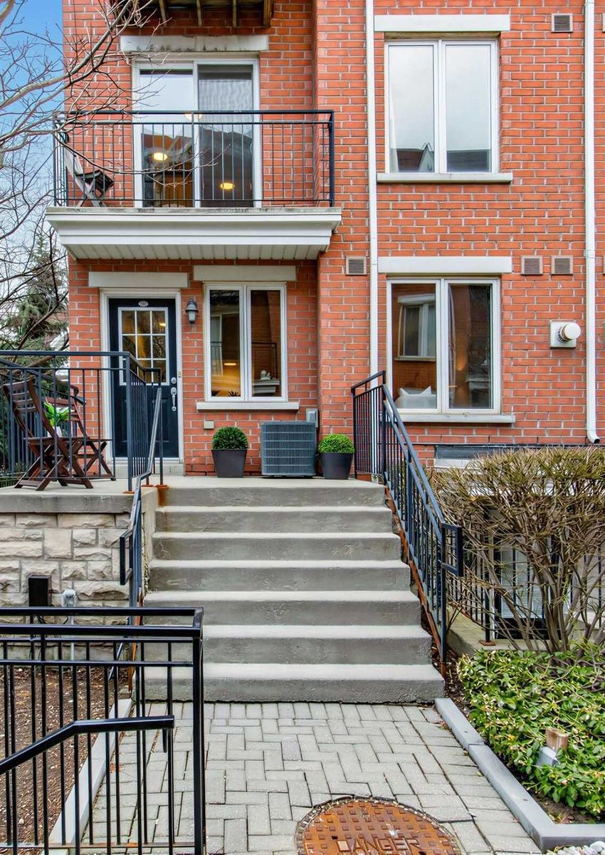 Ready for Summer? Welcome to this beautifully renovated, rarely offered end-unit townhouse in one of Toronto's most vibrant, family-friendly communities. Nestled beside a park, this quiet corner unit offers over 1,600 sq. ft. of thoughtfully designed living space, blending urban convenience with a peaceful residential feel. Featuring 3 bedrooms, 3 bathrooms, and a versatile lower level, this home has been extensively upgraded with around $200,000 in improvements over the past 5 years. Engineered walnut hardwood floors and solid oak stairs add warmth and sophistication throughout. The main level showcases a bright, open-concept layout ideal for living and entertaining. The renovated kitchen features quartz waterfall countertops, stainless steel appliances, and a breakfast bar, flowing into a spacious living room with a gas fireplace and an elegant dining area. The second level is dedicated to a private primary retreat with a large bedroom, spa-inspired ensuite with walk-in shower and barn door, plus a den perfect as an office/dressing area. The third level offers two generous bedrooms, a modern 4-piece bathroom, and a large walk-in closet. The lower level includes a 2-piece powder room, direct access to the built-in garage with EV charger, and a flexible bonus room ideal for a home office, gym, play area or media space. Enjoy a private rooftop terrace with distant lake views, plus two additional balconies. As an end unit, the home benefits from added privacy and natural light. Steps to a park with playground, splash pad, and picnic areas, and close to a dog park, this home is ideal for families and pet owners alike. Walking distance to shops, cafes, grocery stores, restaurants, transit, and some of Toronto's best neighbourhoods. A rare opportunity to own a stylish, turnkey townhouse in the heart of the city.