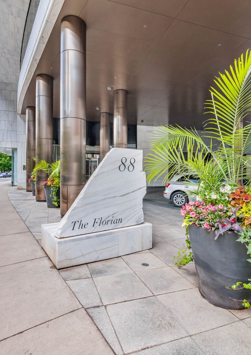 Escape to sophisticated Yorkville living in this sun-drenched corner suite boasting unobstructed city views. A gracious foyer welcomes you into an expansive living/dining area, perfect for entertaining or relaxing bathed in abundant natural light. While the current open-concept layout offers a minimalist flow, please view our virtually staged concept which illustrates how seamlessly a traditional media center and large-scale furnishings integrate into the space. Retreat to the tranquil primary bedroom with its spa-like ensuite and generous closet space. This exceptional residence also includes a convenient laundry room, two prime adjacent parking spots, and a sizeable locker. Beyond the suite itself, The Florian elevates your lifestyle with unparalleled service: 24-hour concierge, valet parking, a fitness centre, indoor pool, and a rooftop garden with BBQ. Guest suites and visitor parking ensure your guests are as comfortable as you are.