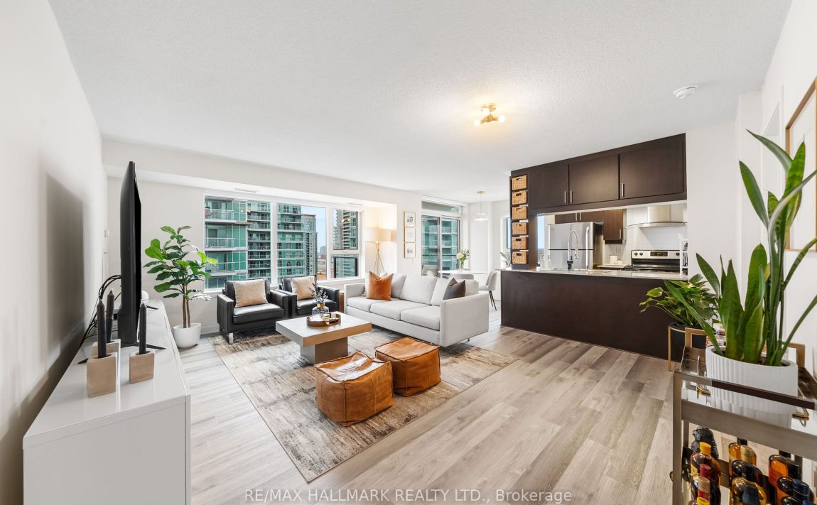 Spacious and beautifully updated, this high-floor condo offers over 1,000 sq ft of living space in the heart of Scarborough. With a well-maintained interior and a smart split-bedroom layout, this home provides stunning, unobstructed views through large windows that let in an abundance of natural light. Elegant hardwood floors run throughout, creating a warm, inviting atmosphere. The open-concept living and dining areas are perfect for both entertaining and relaxing. Plus, enjoy the added convenience of parking and a locker. The buildings luxurious amenities include an indoor pool, sauna, gym, and 24-hour concierge service, all designed to elevate your lifestyle! **EXTRAS** Prime location within walking distance to Scarborough Town Centre, close to Centennial College, Hwy401, supermarkets, Civic Centre, YMCA, McCowan Subway, and GO Bus station. Plus, an upgraded transit line is coming soon to the neighborhood.