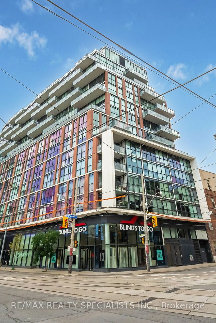 Welcome to this corner unit, south-facing boutique condo ideally located just steps from the Distillery District, St. Lawrence Market, and waterfront. This 650 sqft space is bathed in natural light from floor-to-ceiling windows, enhancing its airy ambiance. Features include a spacious master bedroom, stainless steel appliances, gas stove, built-in microwave, fridge, and dishwasher accented by a stylish backsplash. Enjoy 9-foot ceilings, a gas hook-up on a extra-large private balcony spanning 125 sqft, perfect for outdoor relaxation or dining. Ample storage and elegant pre-engineered floors throughout add to the condo's appeal. The foyer doubles as an office or sitting area, maximizing living space efficiency. Located across the street from a future Ontario Line station, commuting will be effortless. TTC access at your doorstep further enhances convenience. This condo is also within walking distance to shopping, restaurants, schools, and more, making it an ideal urban retreat. **EXTRAS** Gas, water, heat/AC included in maintenance fees