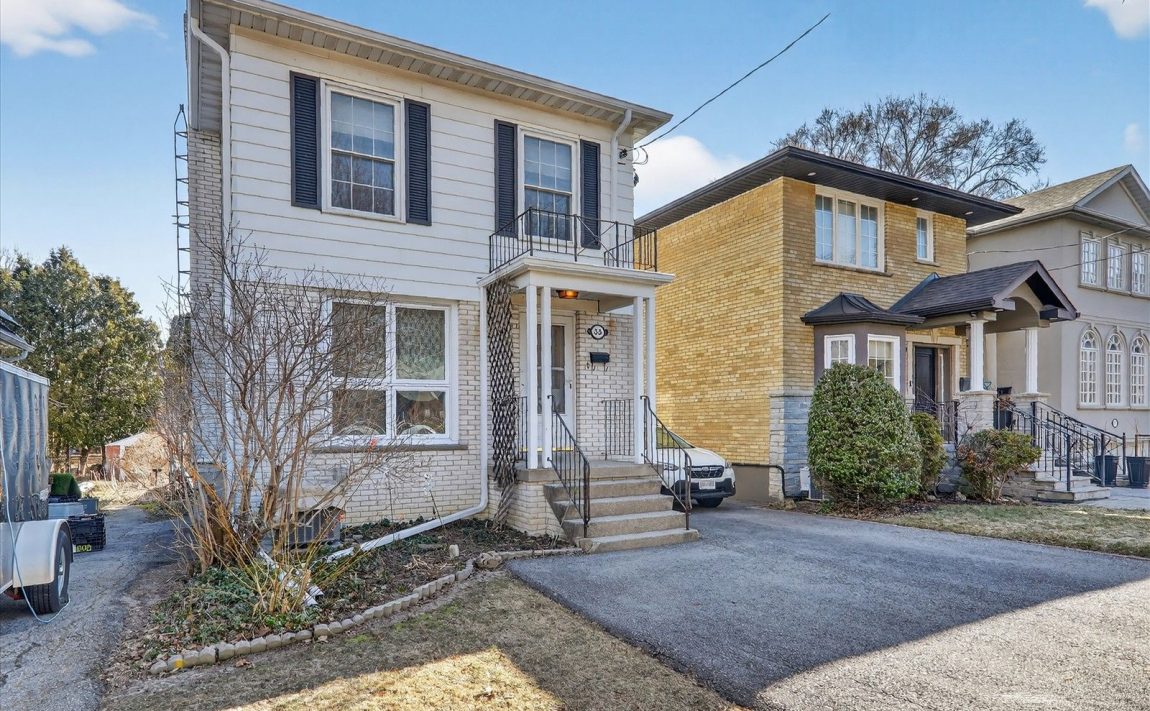 A charming and well-maintained detached two-storey home situated on a quiet, family-friendly street in Toronto, surrounded by many newly built residences. Set on a generous 30 x 120 ft lot, this property offers excellent outdoor space with a beautifully manicured, fully fenced backyard-perfect for relaxing, entertaining, or gardening. Enjoy seamless indoor-outdoor living with a sliding door walk-out from the dining room to a spacious deck. The yard also features a convenient tool shed for additional storage. Inside, the home features parquet flooring throughout both the main and second floors, adding warmth and character. The bright kitchen is equipped with extra cabinetry for ample storage, a newer stainless steel dishwasher, and a window overlooking the picturesque backyard. This home offers one full 4-piece bathroom along with a convenient powder room located in the basement. The basement remains unfinished, providing a blank canvas for future customization to suit your needs. Additional highlights include updated windows, private driveway parking for up to four vehicles, and no garage-maximizing outdoor and parking flexibility. Ideally located within a short walk to public transit, this home combines comfort, convenience, and future potential in an evolving neighbourhood.