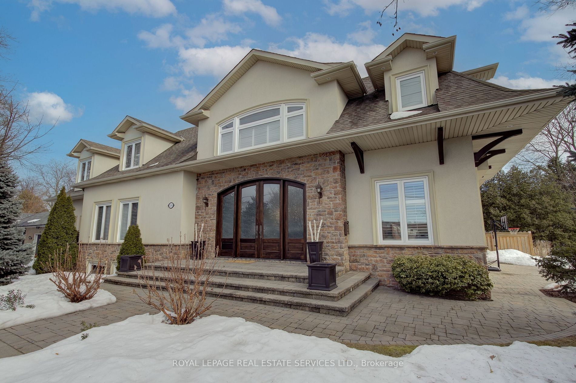 From the moment you step through the 12' wide solid mahogany front doors into the stunning 2-storey foyer, this home captivates with its rare blend of grandeur and warmth. Set on a beautifully treed 100'x100' lot with a gorgeous south-facing backyard, this ideal family home offers both privacy and easy access with its driveway off Christina Dr, a quiet little side street. The main floor is perfect for both grand-scale entertaining and casual family life, featuring a main floor office, a gourmet kitchen open to the spacious great room, and impressive formal living & dining rooms with soaring ceiling heights and a stunning pre-cast stone fireplace. The functional mudroom area includes a convenient side door entry from the drive and access to the 2-car garage with additional storage and enough height to accommodate a car lift. Upstairs, you'll find a laundry room, four large bedrooms, and three full baths with heated floors in all. The primary bedroom is a true retreat, complete with vaulted ceilings, fireplace, Juliette balcony, walk-in closet, and luxurious 6-piece ensuite. The basement offers bright and versatile space that can be adapted to meet your family's needs. It features two large recreation rooms, above-grade windows, a walk-up to the backyard, cold storage finished with stone tiles (perfect for a wine cellar), rough-in for a wet bar, a 3pc bath with a rough-in for second laundry, plus lots of storage. This home boasts 9' ceilings and higher, wide plank hand-scraped African Walnut hardwood floors, Safe 'n Sound solid core doors, and custom shutters/blinds throughout the main and second floors. As well as a gloriously sunny and very private backyard with all the room you'll need to play, entertain, or just relax and enjoy the peacefulness of nature. If you're dreaming of a pool, this is the perfect backyard for it!