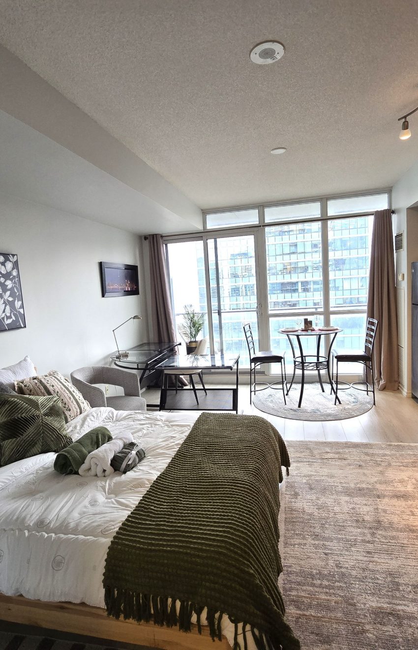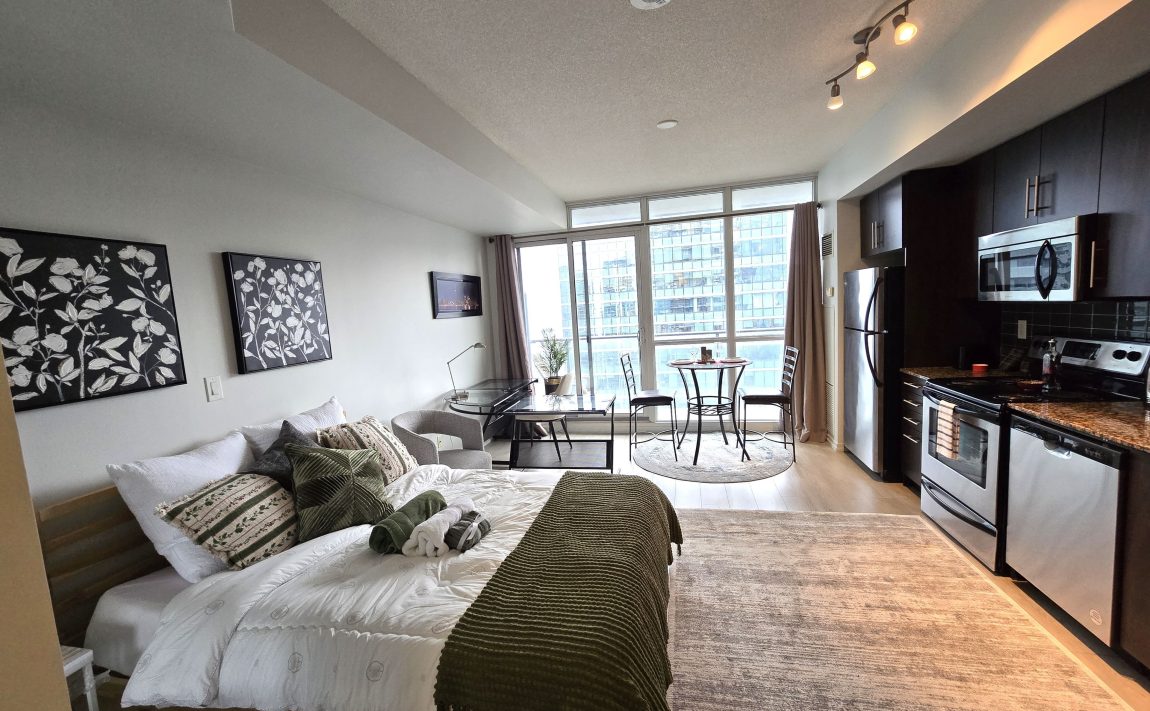 Welcome to this fabulous studio in the Residences of Maple Square in the heart of Toronto harbourfront, financial and entertainment districts. Offering breathtaking views of the CN Tower and Lake Ontario. Recently fully renovated, new high-quality flooring with sound-protecting underlay, modern finishes, and a bright, open layout. Enjoy your mornings and evenings on the large balcony with beautiful view. Fully furnished and equipped for immediate Airbnb rental). Located in a highly desirable, very well-managed complex with luxurious starte-of-the art amenities: two pools (indoor heated pool with jacuzzi sauna and rooftop outdoor heated pool with BBQ and tanning deck and barbecue), gym, sauna, theatre/media room, billiards, business centre, party/meeting rooms, 24-hour concierge. Direct access to The PATH and nearby amenities. Building permits short-term rentals, making this a turnkey investment opportunity; owner is superhost.