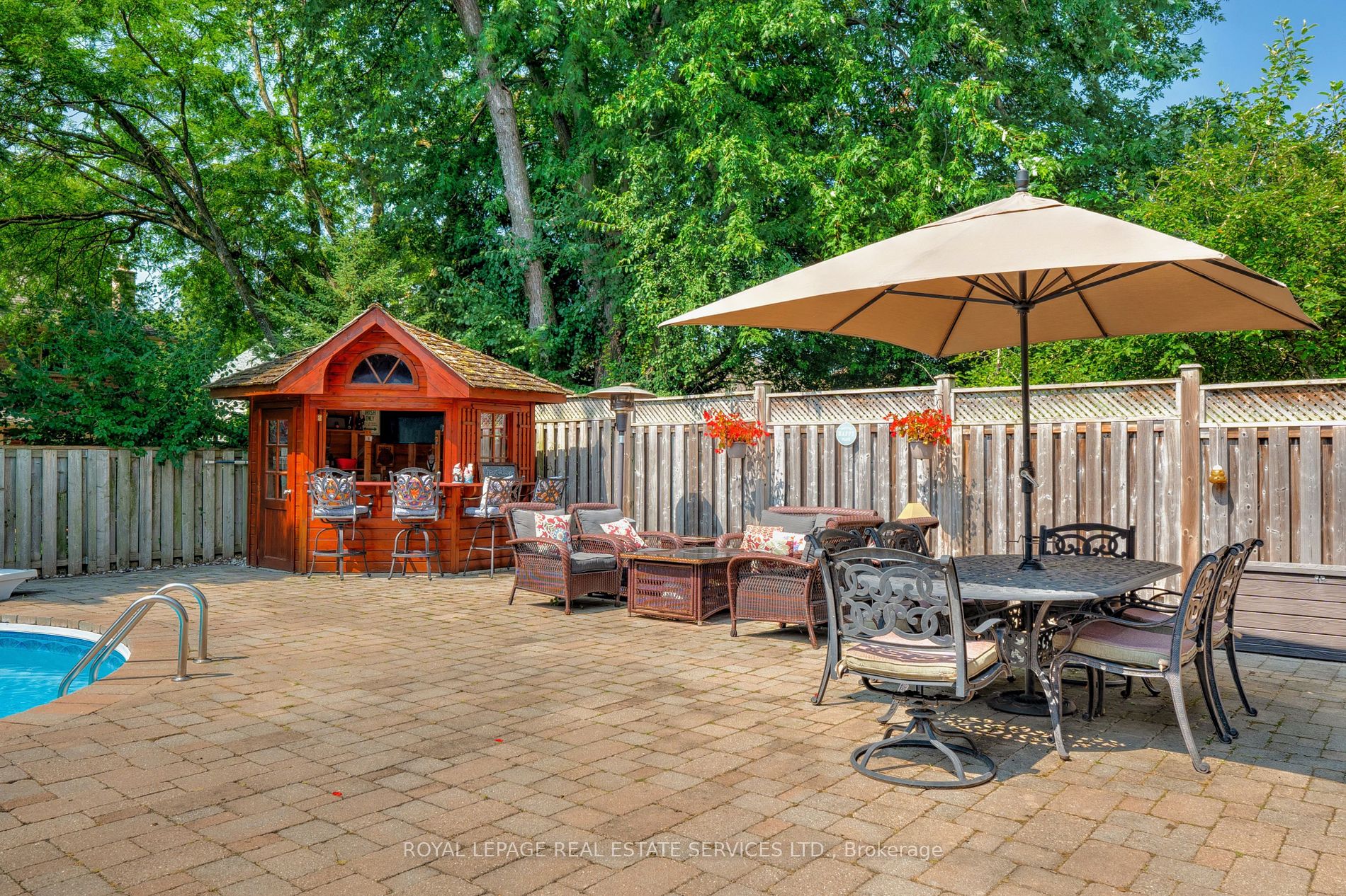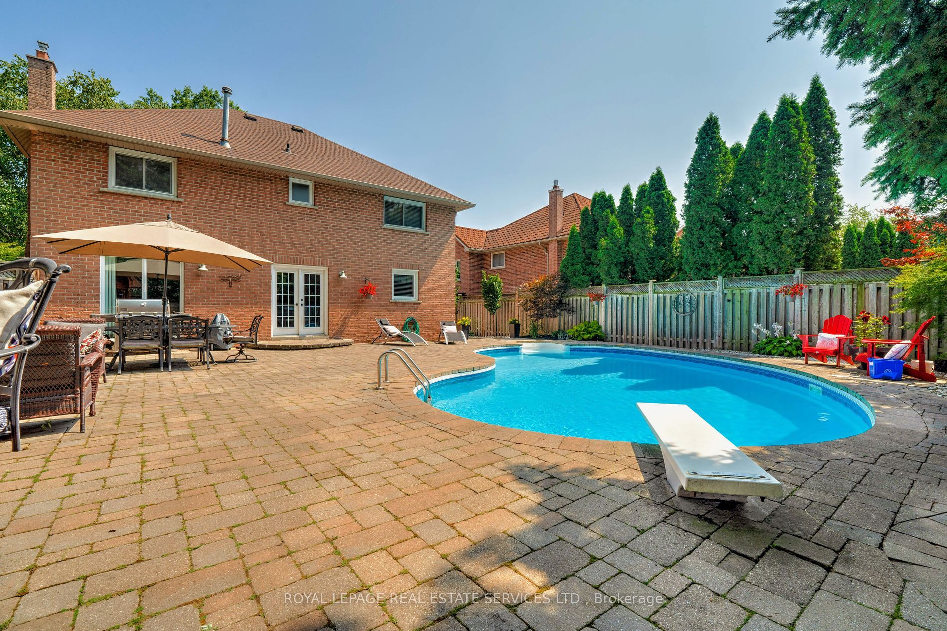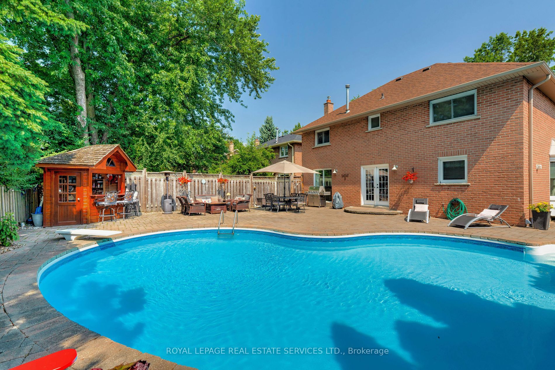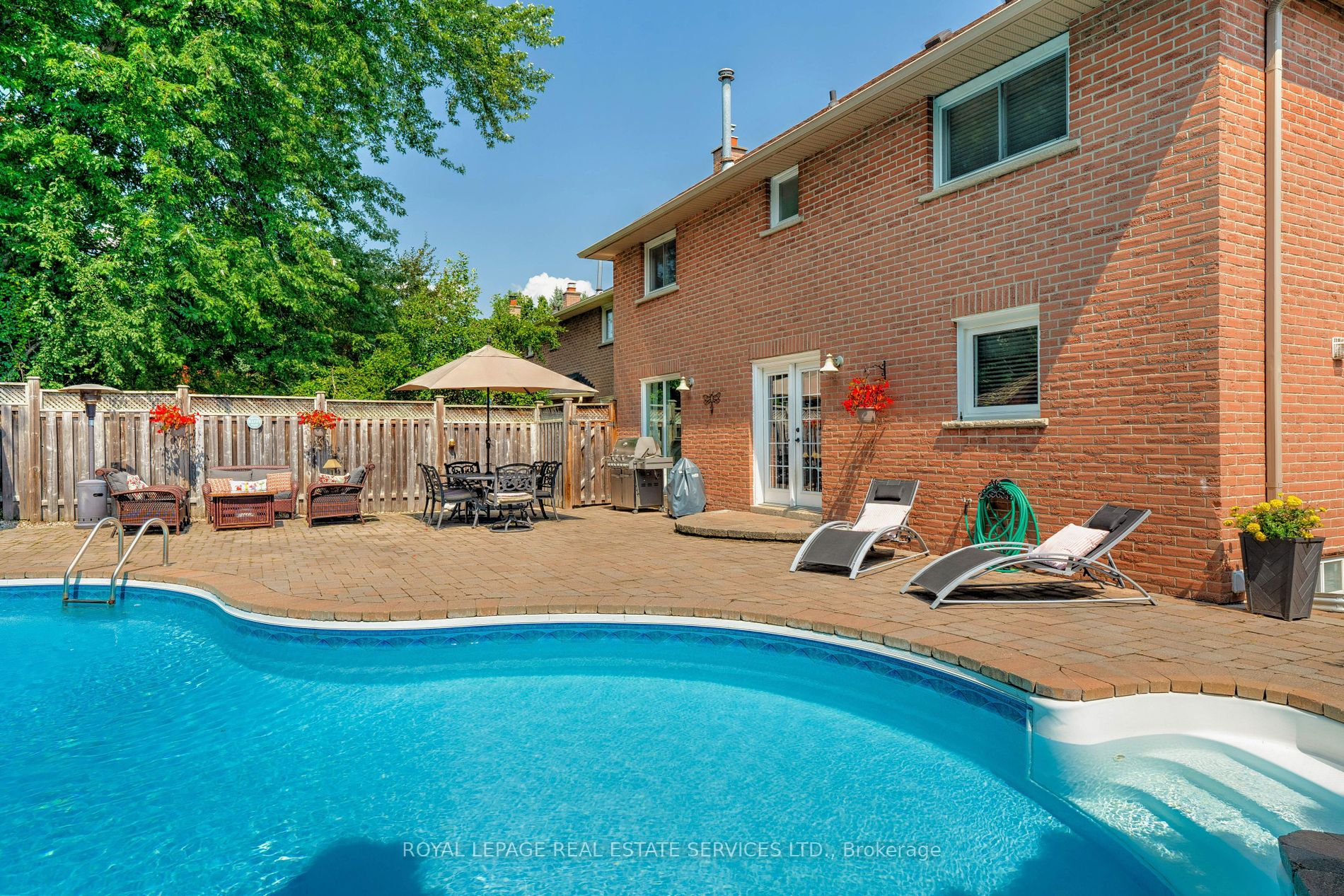 Welcome to 400 Claremont Crescent, a distinguished property nestled in serene and prestigious Southeast Oakville. With 3000 sqft of finished living space, this meticulously crafted family home is strategically positioned on a tranquil, tree-lined crescent, and offers an unparalleled blend of elegance and comfort. The main floor boasts sophisticated entertaining spaces, featuring a refined formal living room and dining area perfect for hosting family and friends. The heart of the home showcases a kitchen with an adjacent breakfast area, complemented by French garden doors that seamlessly connect interior living to the professionally landscaped exterior. The open concept family room exudes warmth and character, enhanced by a gas fireplace and rich hardwood flooring. Practical amenities include a convenient two-piece powder room and a dedicated laundry space with a separate side entrance. The upper level presents a primary bedroom suite, complete with an expansive walk-in closet and a 4pc ensuite bathroom. Three additional bedrooms and a well-appointed 3pc main bathroom complete the second-floor accommodation. The fully finished basement represents an additional realm of versatility, featuring a recreation room with a built-in media niche, a flexible open area den, and a fifth bedroom with ensuite 3pc bathroom privileges. Abundant storage solutions and a practical cold room further elevate the home's functionality. Outdoor living features a professionally landscaped backyard, complete with an extensive interlock stone patio and a resort-style pool, complemented by an elegant pool bar and cabana. A convenient natural gas hookup for BBQ enthusiasts and outdoor entertaining. Strategically situated in proximity to top-rated schools, scenic trails, parks, convenient shopping, and easy highway access, this property represents the pinnacle of suburban family living in one of Oakville's most coveted neighbourhoods.