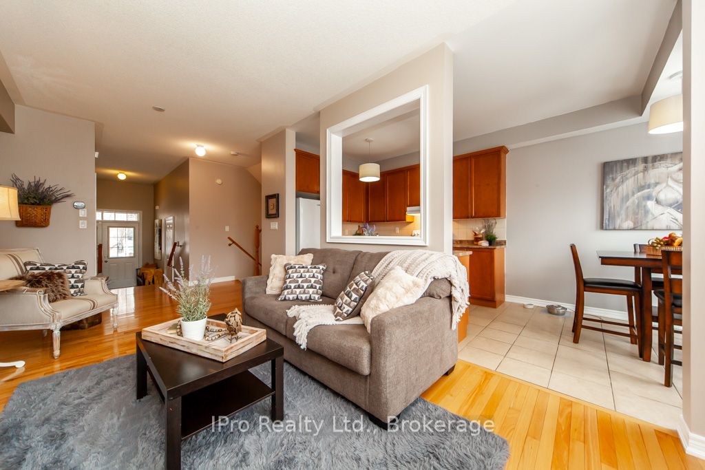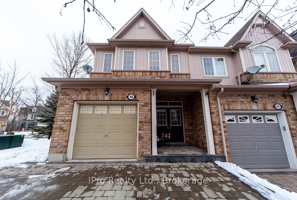 Welcome to this executive end unit 3-Bedroom freehold townhome in a prime location , perfectly situated in a highly sought-after area near Glen Williams, Go Train, downtown Georgetown, and shopping. As you step through the double-door entry, you'll be immediately impressed by the home's 9-foot ceilings and gleaming hardwood floors throughout main level and upper landing. The cozy gas fireplace in the living room adds a touch of warmth and sophistication, while the bright, eat-in kitchen offers a delightful space for meal preparation with a walkout to a deck with a BBQ natural gas hook up. Upstairs, the spacious primary bedroom boasting a 4-piece ensuite with a separate shower and a generous walk-in closet. An additional well-appointed 4-piece main bathroom serves the remaining bedrooms. The fully finished walkout basement is a standout feature, offering a versatile recreation room and an additional bedroom, den, or workout room ideal for creating your personalized space. This homes exterior is just as impressive, featuring a single garage, a 2-car paving stone driveway, and a charming front porch, providing ample parking space something rare in townhouse complexes. This highly desirable model is a rare find on the market, so don't miss the opportunity to view this superb home. The low maintenance fee of $134.10/month covers snow removal, lawn and tree maintenance, and upkeep of the common elements. **EXTRAS** Maintenance fee $134.10/mth covers snow removal, lawn and tree maintenance, common elements