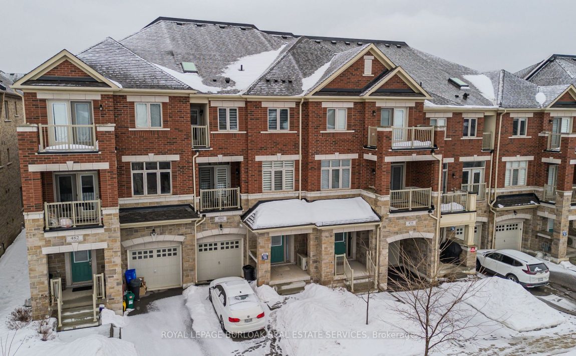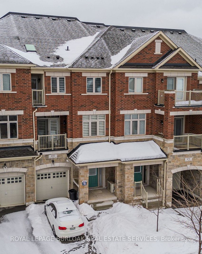 480 Silver Maple Road is a recently built townhouse offering modern living in the heart of Oakvilles sought-after Uptown Core. Located in the family-friendly Joshua Meadows neighborhood, this home sits in a quiet, safe community with easy access to everything you need. Walk to one of the best recreation parks in town, enjoy nearby shopping, dining, and essential amenities, and take advantage of quick access to major highways, transit, and the GO stationperfect for commuters and families alike. Step inside to a welcoming entryway with a cozy sitting area, setting the tone for the inviting spaces that follow. The second floor showcases a bright, open-concept kitchen with sleek stainless steel appliances, granite countertops, a coffee bar, and a functional island with a breakfast bar. The kitchen also features a double sink, ample storage, and a walkout to a private balcony, perfect for morning coffee or evening relaxation. Overlooking the kitchen is a warm and stylish living room, complete with rich hardwood flooring, a large window allowing for plenty of natural light, and an elegant fireplace creating the perfect cozy atmosphere. A modern 2pc powder room completes this level, while a beautifully crafted wooden staircase with iron spindles leads upstairs. The third floor is designed for comfort and privacy. The spacious primary bedroom offers a walkout to a second balcony, a skylight that fills the space with natural light, and double closets providing generous storage. The 4pc ensuite features a sleek tiled shower, large vanity, and contemporary finishes. Two additional bedrooms offer versatility, whether used for family, guests, or a home office. A shared 4pc bathroom mirrors the ensuites modern style, ensuring both comfort and convenience. With a thoughtfully designed layout, upscale finishes, and a prime location surrounded by parks, shopping, and transit, this home is a fantastic opportunity for those seeking style and convenience in North Oakville!