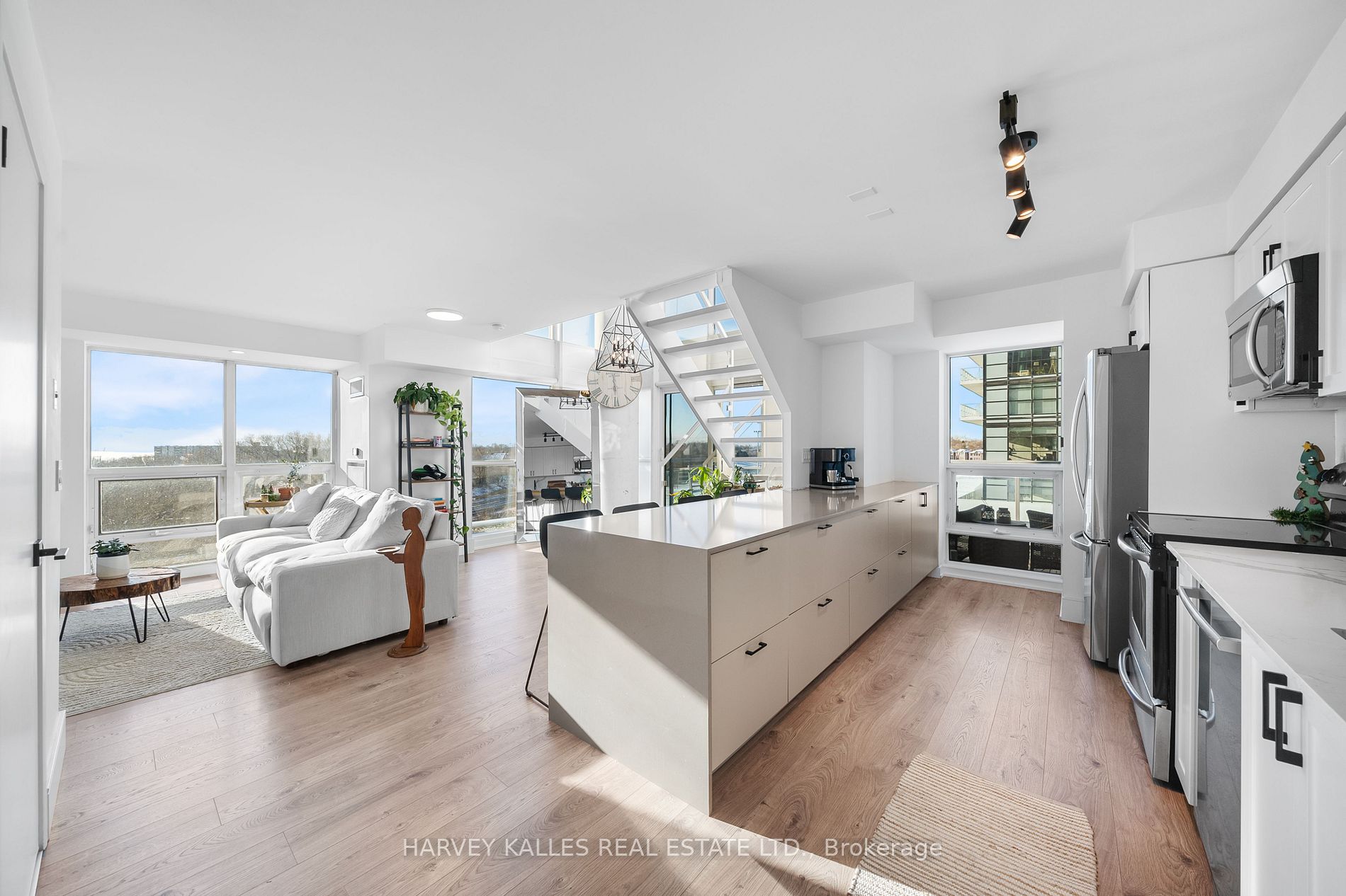 Welcome to this stunning open concept loft boasting 2-bedrooms, 2-bathrooms and 1 parking in the heart of Mimico, where urban living and relaxation merge. With soaring floor-to-ceiling windows, this contemporary suite is flooded with natural light, offering a serene experience and an airy ambiance that feels like a retreat from the city's hustle. The bright, stylish kitchen blends seamlessly into the expansive living area, creating a perfect space for entertaining or unwinding. The kitchen is equipped with S/S appliances and has been updated with beautiful marbled backsplash and countertops, a waterfall breakfast bar countertop and an abundance of extra kitchen cabinet space. The spacious primary bedroom and spa-inspired ensuite bathroom provide comfort and luxury, while thoughtful details throughout add character and charm. Included with the unit is a coveted parking spot, but you may hardly need it! Nestled steps from the Lakeshore, the marina, and endless trails, this location is a haven for nature lovers! Convenience is key, with quick access to the QEW, HWY 427, HWY 401, and every urban amenity you could desire from restaurants and grocery shopping centers to cozy cafes. The building offers an array of wonderful amenities including an outdoor pool, sauna, rooftop deck with BBQs, a fitness center, games room and more! Don't just live thrive in a space that truly offers the best of both worlds: city sophistication and lakeside tranquility. Your Mimico dream loft awaits! **EXTRAS** World Class Amenities Include Gym, Squash Court, Track, Media Room, Roof Top Pool, Hot Tub, Bbq's, Garden Deck, And Parking Included.