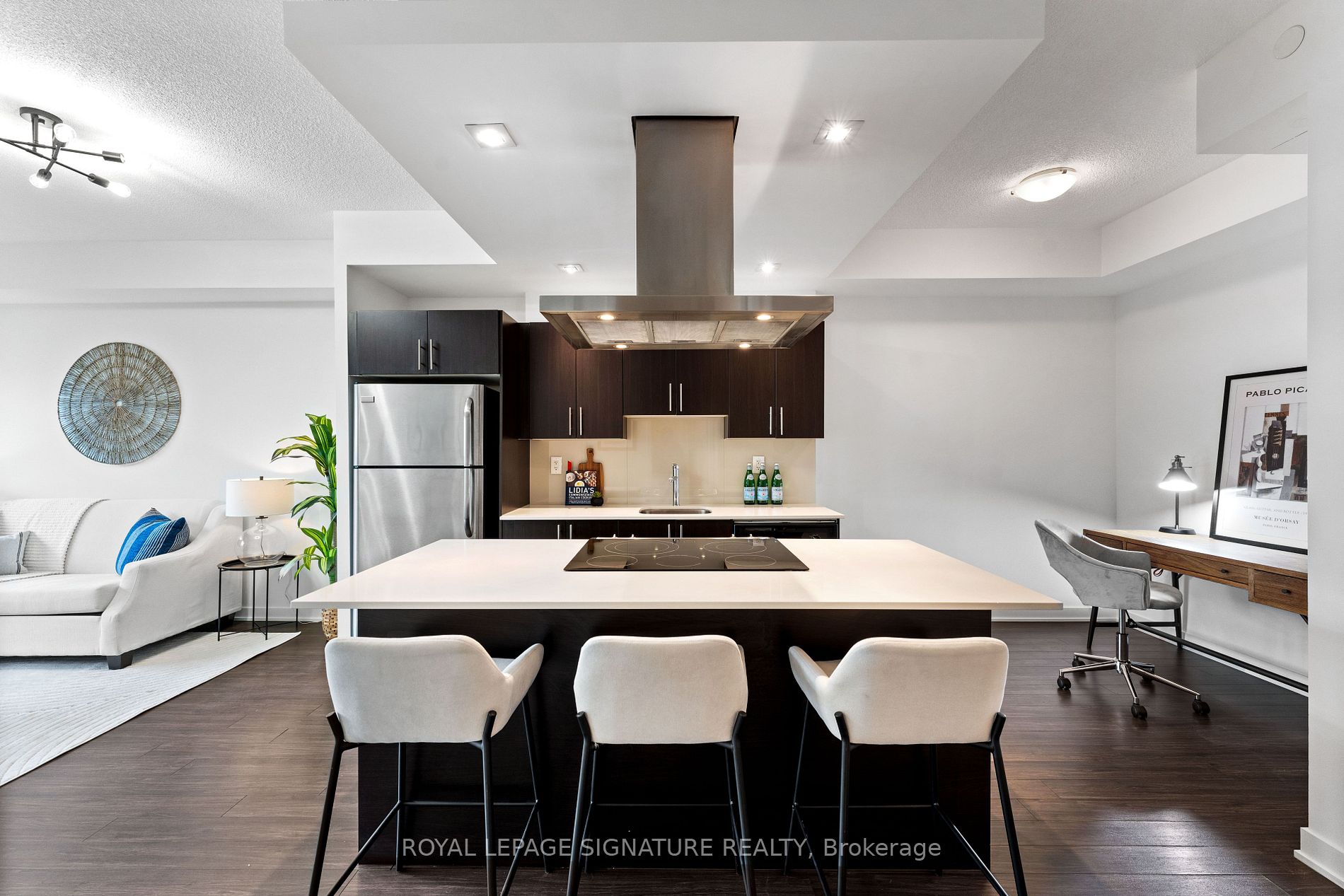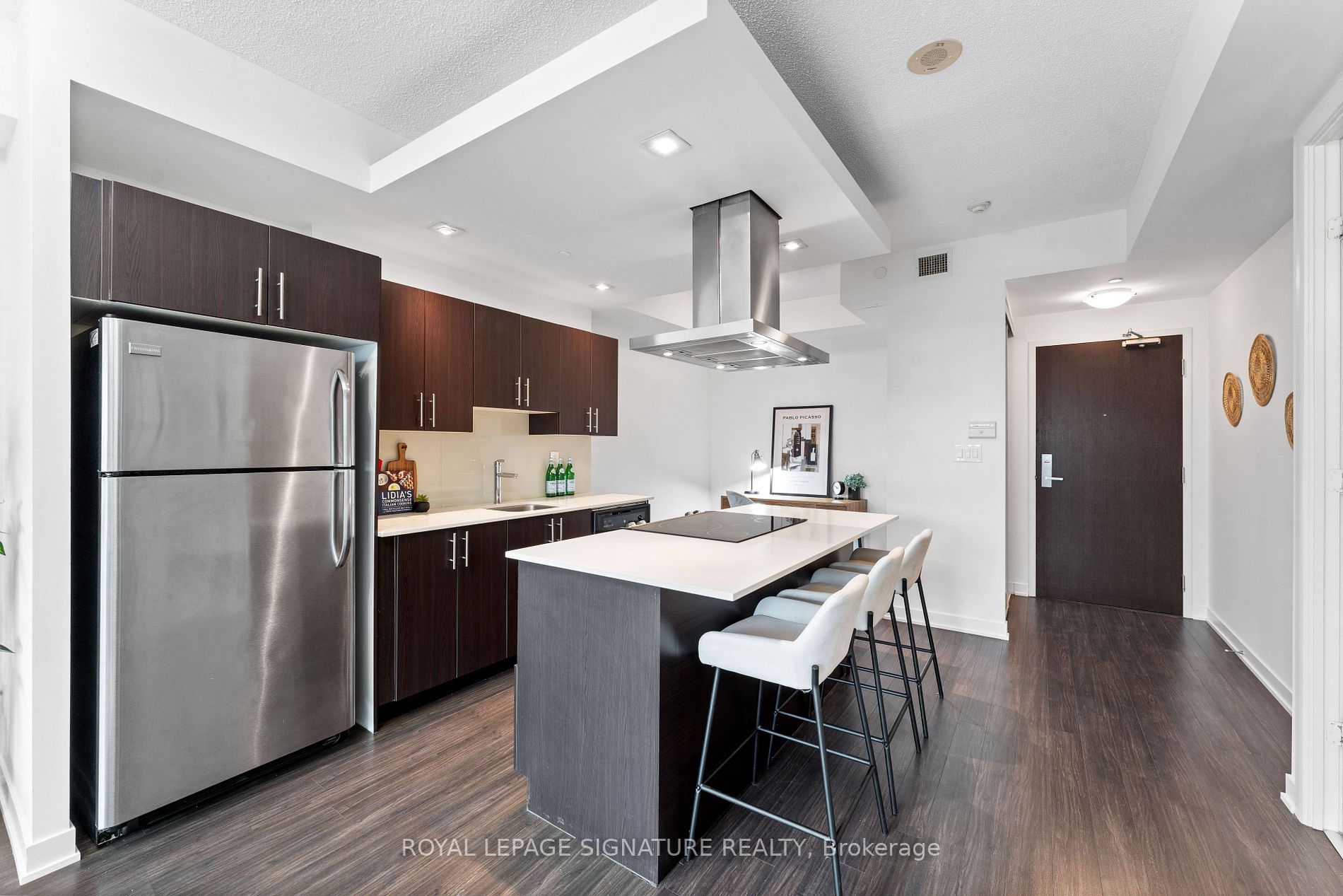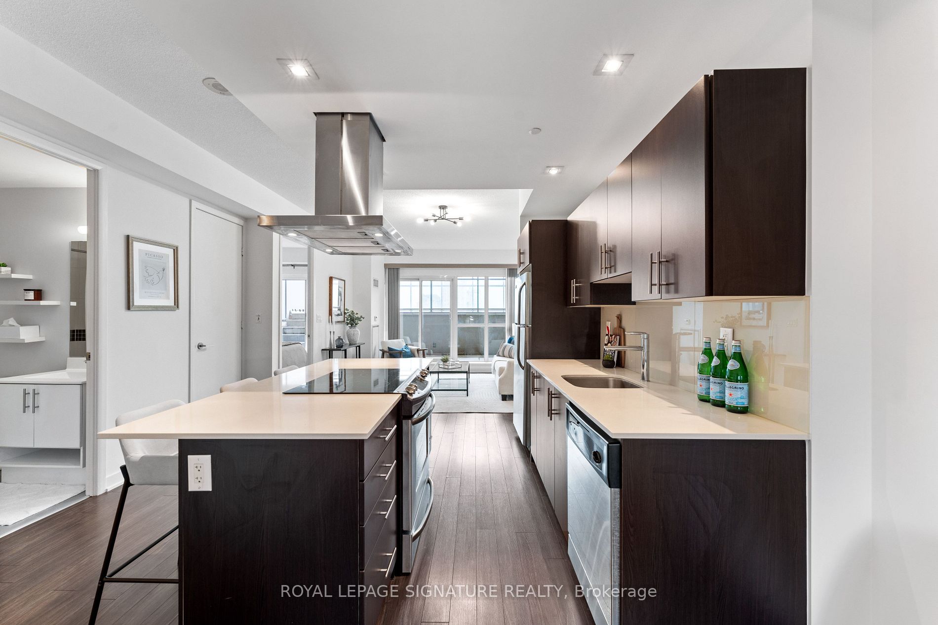 RARE Terrace Alert - Welcome to the California Condos where you can enjoy Waterfront Living in Style. This one bedroom plus den is an Entertainers DREAM with a Sunny South Exposure &Enormous 546 Sqft Terrace. Bask in sunshine while surrounded by Lake and Ravine Views. Your Modern Open-Concept Kitchen Features a Centre Island, Quartz Counters, SS Appliances and Stylish SS Rangehood. Your Den can Easily Function as an Eat-In Kitchen Area or an Ideal Home Office. Your Generous Open Concept Floorplan includes 9 Foot Ceilings, Upgraded Lighting with dimmer (2025), Freshly Painted Walls/Ceilings/Baseboards (2025), Wide-Plank Laminate Flooring. Enjoy Access to the Terrace from both your Living & Bedroom Areas. Ample Closet Space in both the Primary Bedroom and Front Door Closets. New Washer/Dryer (2024 with warranty). This Luxury Building includes 5 Star Recreational Facilities including: Indoor & Outdoor Pools and Whirlpools, 2 Gyms (31st & 4th Fl), Rooftop Party-Room & Outdoor Terrace with Panoramic Lake and City Views, Landscaped Rooftop Garden, Sauna, Squash Courts, Yoga, Aerobics Studio, Running Track, BBQ's, TTC Accessible, Steps from the Waterfront, Martin Goodman Trail(Run/Walk/Bike/Blade), Restaurants, Shopping, Groceries, Farmers Markets and More! Enjoy Life By The Lake in a Vibrant & Active Community.