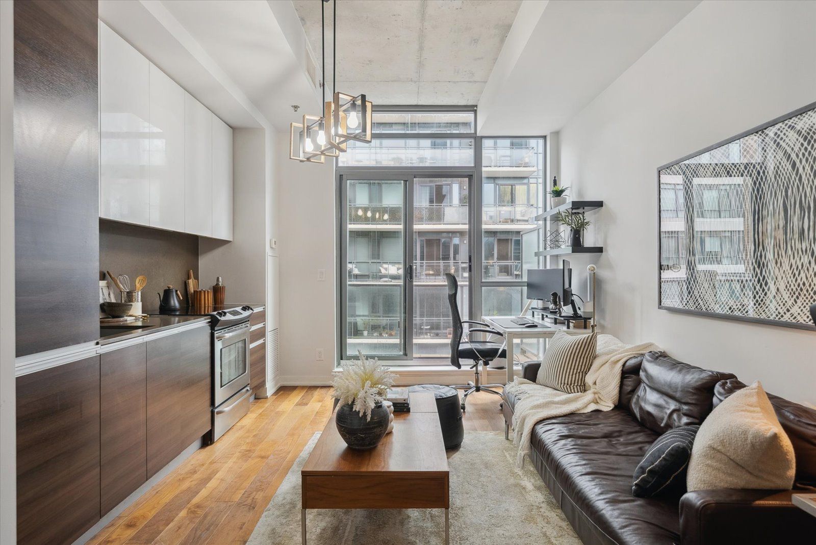 Located in the heart of Little Portugal, 8 Gladstone Ave offers unbeatable access to Queen West streetcars, boutique shops, trendy restaurants, and vibrant city lifejust minutes from downtown with parks, schools, and daily essentials at your doorstep. Welcome to this stunning 1-bedroom, 1-bathroom condo where modern flair and industrial chic converge to create the perfect city retreat. This open-concept gem features soaring ceilings, rich hardwood flooring, and full-height upper kitchen cabinets and full size appliances that combine elegance with everyday functionality. Seamless flow into the living area perfect for entertaining or relaxing in style. Unique to this unit, a gas line to the private balcony offers the ideal setup for outdoor cooking or cozy evenings under the stars. Enjoy generous closet space and in-unit washer and dryer. Don't miss your chance to own a piece of Queen Wests dynamic lifestyle.