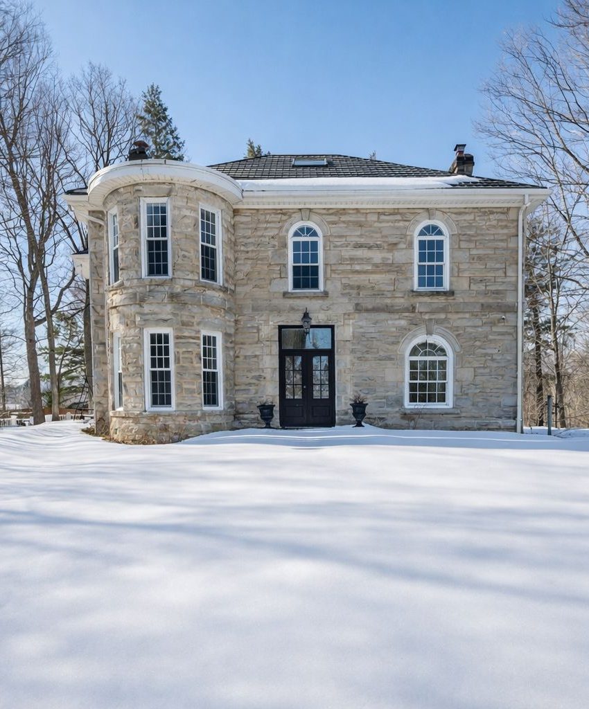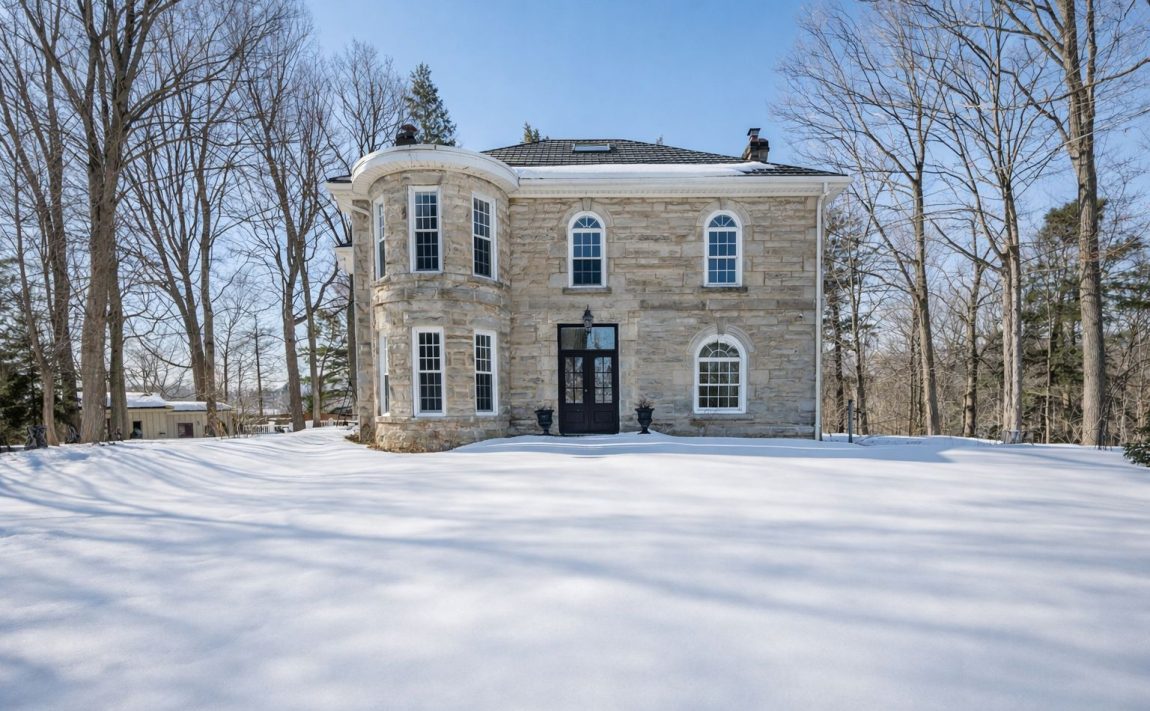 A rare four-acre country retreat 5 minutes from Milton and Highway 401. This distinguished, solid cut-limestone 2.5-storey century home (c.1890s) blends historic character with exceptional natural surroundings, offering privacy, charm, and convenience in one remarkable property. Home is approximately 3200 sq ft by measurement above ground, including the third floor. Set on 4.1 acres backing onto a protected ravine, the property provides peaceful views and a true sense of country living while remaining only minutes from town amenities and major commuter routes. Inside, the home offers five bedrooms and three bathrooms, with original millwork and sun-filled rooms overlooking the picturesque grounds. Freshly painted interiors in a soft neutral palette enhances the home's warmth and timeless character. A brand-new electric heat-pump HVAC system (2026) provides efficient year-round heating and cooling with modern performance and reduced operating costs. Additional recent improvements include a custom front door (2025) and a new basement door (2026). The expansive parcel features generous frontage and two existing driveways, offering flexibility of use and long-term potential. Perfect for families and pet owners, the property includes an invisible perimeter fence system, allowing dogs to safely roam across the acreage. Adding to its appeal, the home benefits from exceptionally low annual property taxes of approximately $5,536, supported by the Conservation Land Tax Incentive Program.