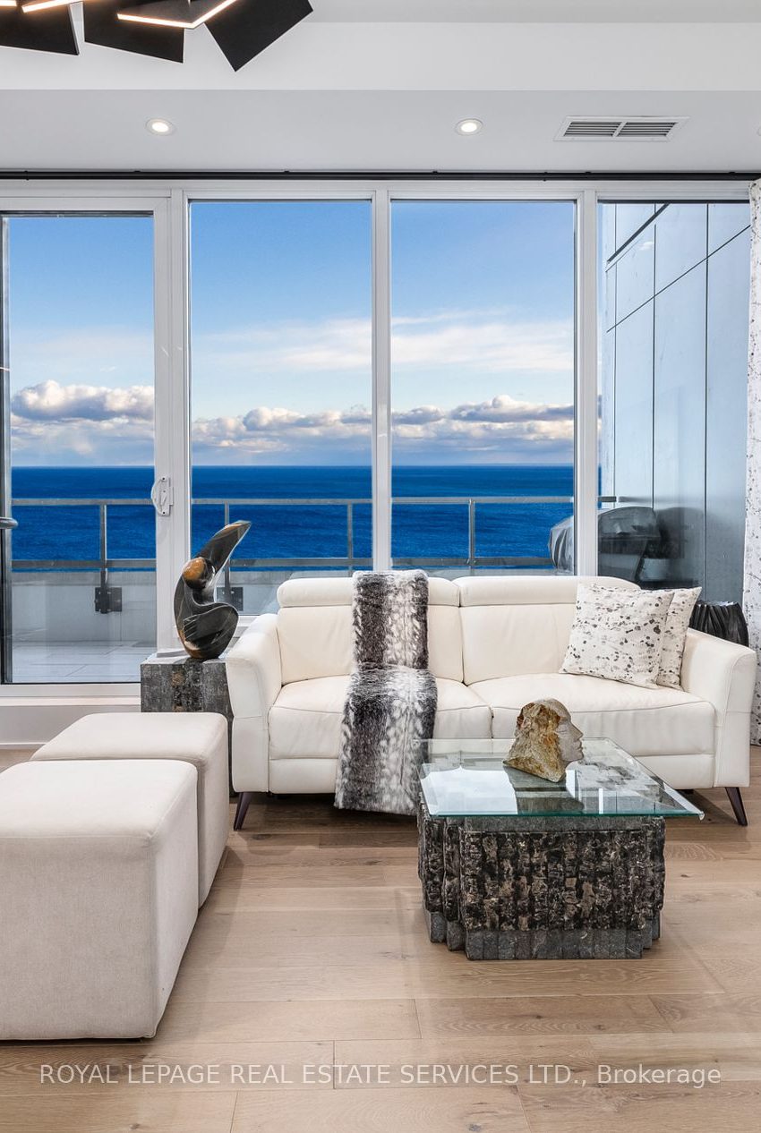 Welcome to the crown jewel of Mirabella where a New York state of mind overlooks jaw-dropping city and water views! Penthouse 5E is a chic and sublime luxury condominium residence, with approximately 1,485 square feet of living space, 3-bedrooms, 3-bathrooms, a 143 square foot terrace, decadent designer finishes, and enchanting views of Lake Ontario and the Toronto city skyline. Situated between High Park and Lake Ontario in Toronto's sought-after Swansea Village, Mirabella is an elegant luxury waterfront condominium residence consisting of two 38-storey towers that are connected by a spectacular podium. Mirabella features every conceivable amenity, including a security system, with concierge service, and over 20,000 square feet of indoor and outdoor amenity space, including guest suites, an indoor pool, a yoga studio, a library, a party room, with a catering kitchen, a dining room, a business center, a children's play area, a gym, and an outdoor terrace, with BBQs. **Custom-designed Irpinia kitchen, pot lights, designer light fixtures** **This is a trophy property on Toronto's waterfront.**