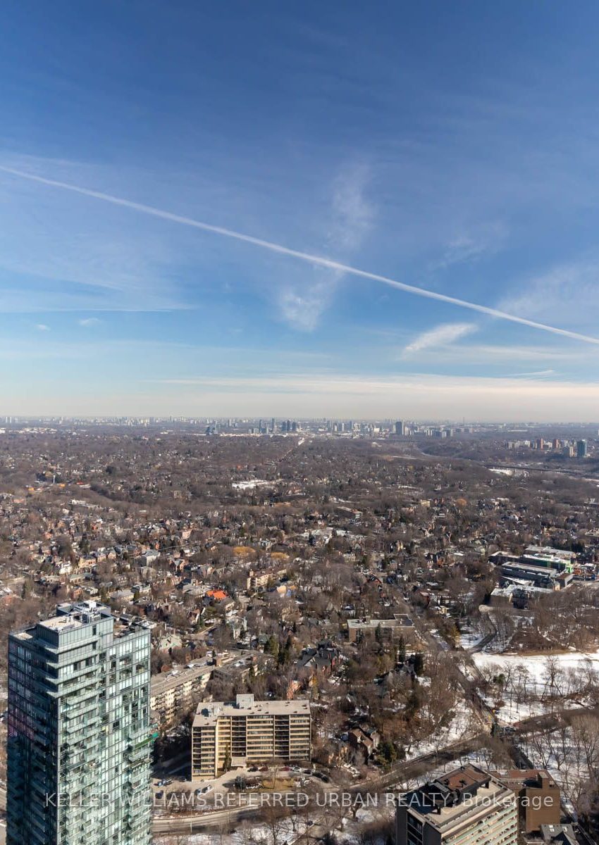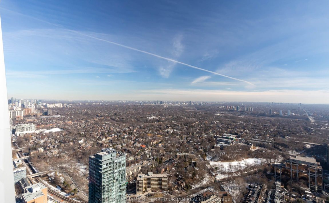 Life At The Top! Wake Up Each Morning Inspired By Your Ever-Reaching Panoramic View! One Of The Only 2 South View Units On Penthouse Floor. 2 Bedrooms 2 Ensuites ,10' Ceiling With 2 Balconies 2 Parking & 2 Lockers, Plus 2Pc Powder Room. Boasting One Of The Most Prestigious Addresses In The City. South East Corner, Bright And Spacious Unit Located On The 58th Floor. Breath-Taking Views Of The City & Lake. Oversized Floor To Ceiling Windows Allowing Immense Amount Of Natural Light. Upgraded Kitchen With Top-Line Subzero Flushing Mounting Fridge. Wolf Cooktop. Double Ovens & Wine Fridge. Primary Bedroom Accessible To South Balcony, Large Walk-In Closet & Spa Like 6 Pc Ensuite Bath, Two Sinks, Glass Shower And Soaker Tub. 2nd Bedroom Has Its Own Balcony, Walk-In Closet & 3Pc Ensuite Bath, This Unit Is Located Minutes To Designer Boutiques, Fine Dining, Both Bloor & Yonge Subway Lines & The Underground Path & Walking Distance To U Of T. Property Is Being Sold "As-Is Where-Is".